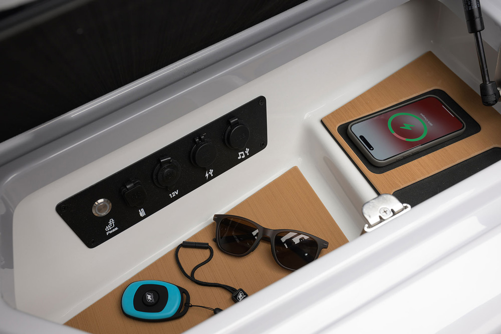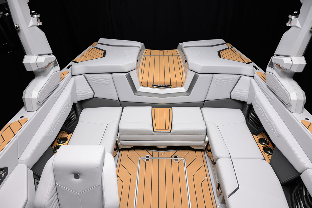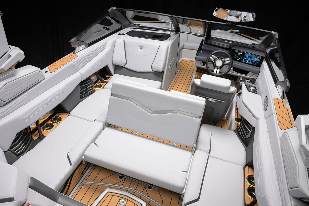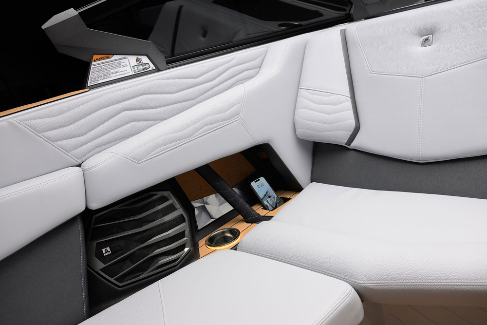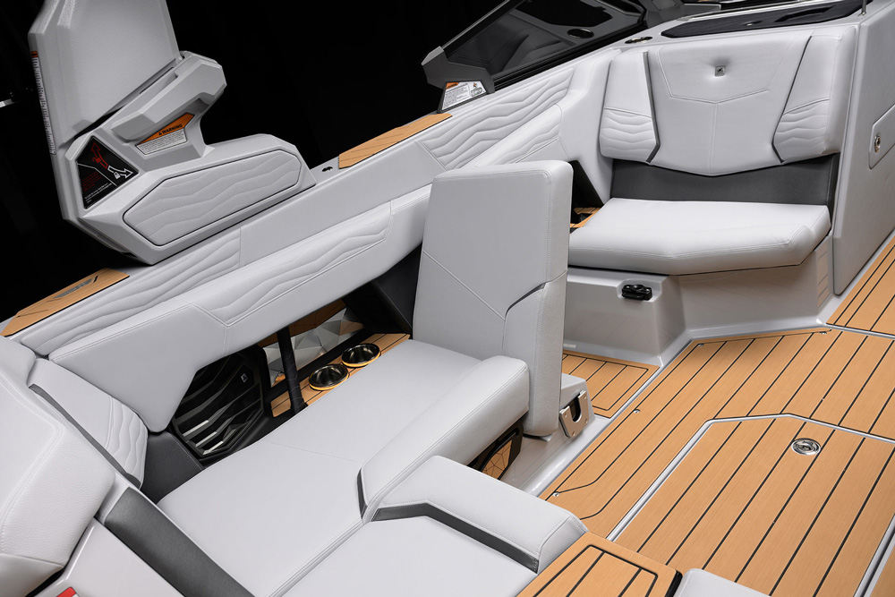 わずか 21フィートの新型G21は、ゆったりとしてスペースと抜群の収納スペースを備えています。くつろいだり、ライディングを観戦するのに適したラウンジは、あなたと友達が水上で 1 日を過ごすために、やりたいことに合わせて簡単にレイアウトを変更できます。新しくなったドライバーズエリアは、このボートを同クラスのトップに押し上げるインテリア全体に施された贅沢なタッチで、比類のない運転体験をあなたに提供します。