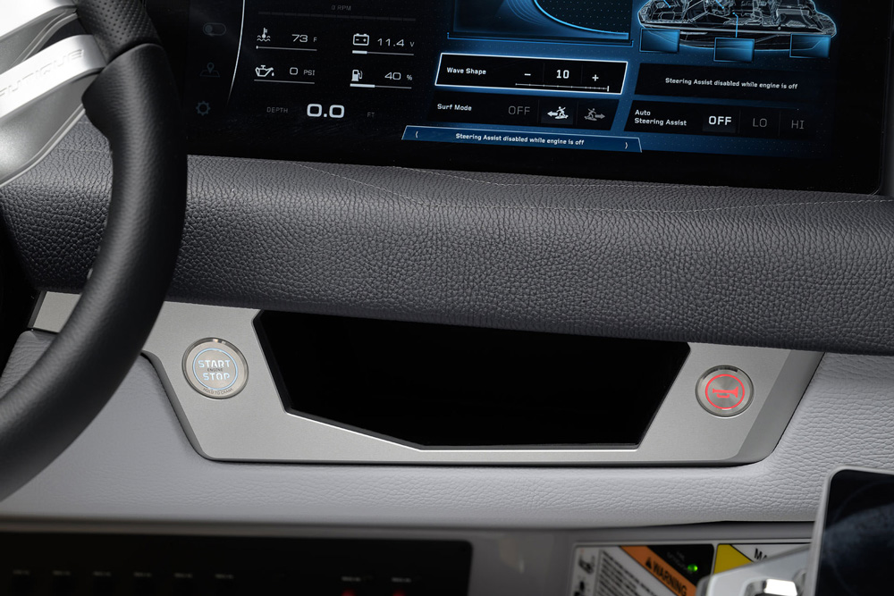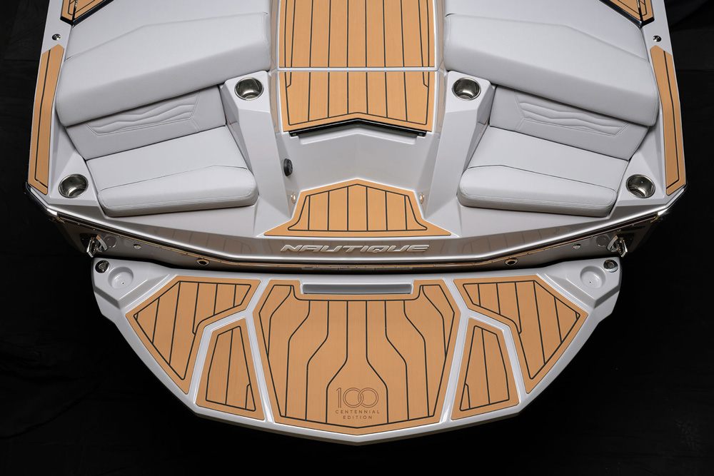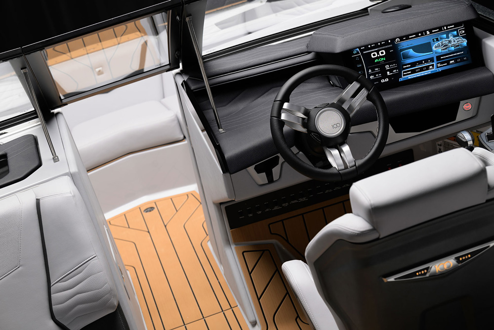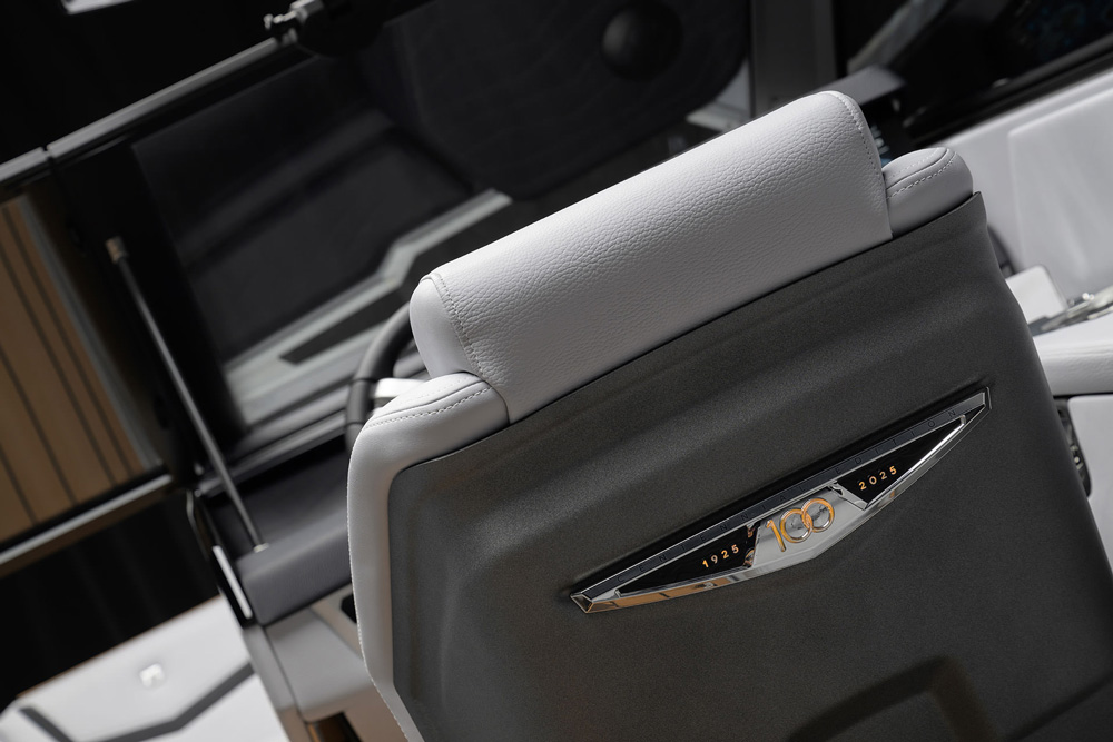 100周年を記念して、センテニアル エディションをご提供できることを誇りに思います。このエディションには、2025年モデルのすべてのボートに特別な装飾が加えられています。G21のドライバーズシートには、当社の代表的なセンテニアルロゴがステアリングホイールに刻まれており、ドライバーズシートの背面にはバッジとして表示されています。G21の電源を入れると、センテニアルロゴが LINCパノレイタッチスクリーンに表示されます。このロゴは、後部プラットフォームの SEADECKノンスキッドにレーザー刻印され、ガンネル上部のビレットプレートに機械刻印され、グローブ ボックスウィンドウの下側にレーザー刻印されています。2025年モデルのみで利用可能な限定ゲルコートカラー「センテニアル ブラック メタル フレーク」は、深みのあるオニキス ブラックとミディアム ゴールド フレークのユニークなブレンドで構成され、当社の 100 周年記念のエッセンスを表しています。