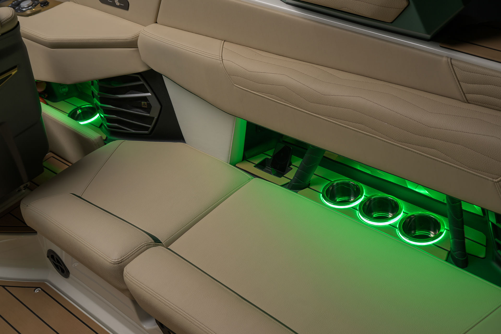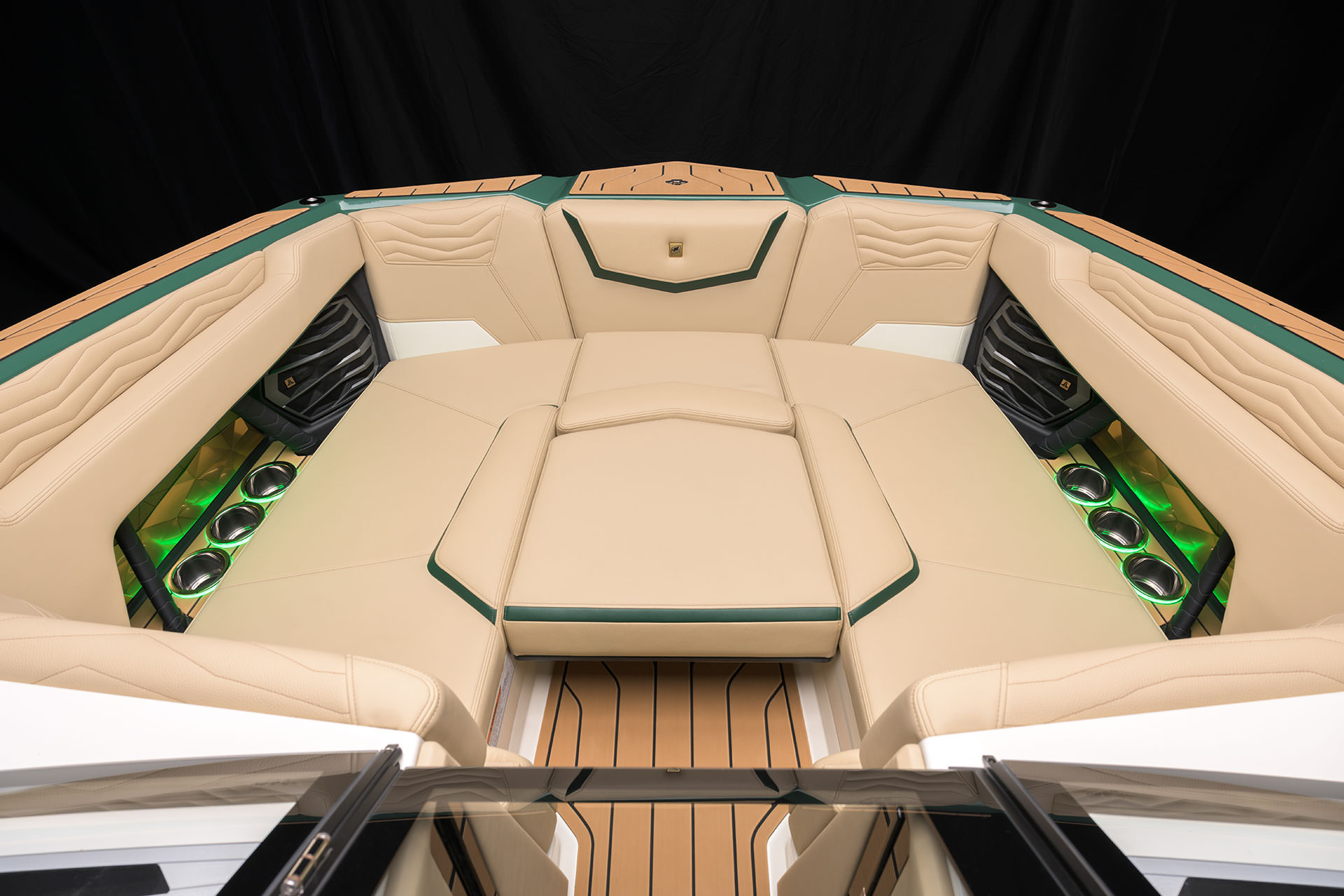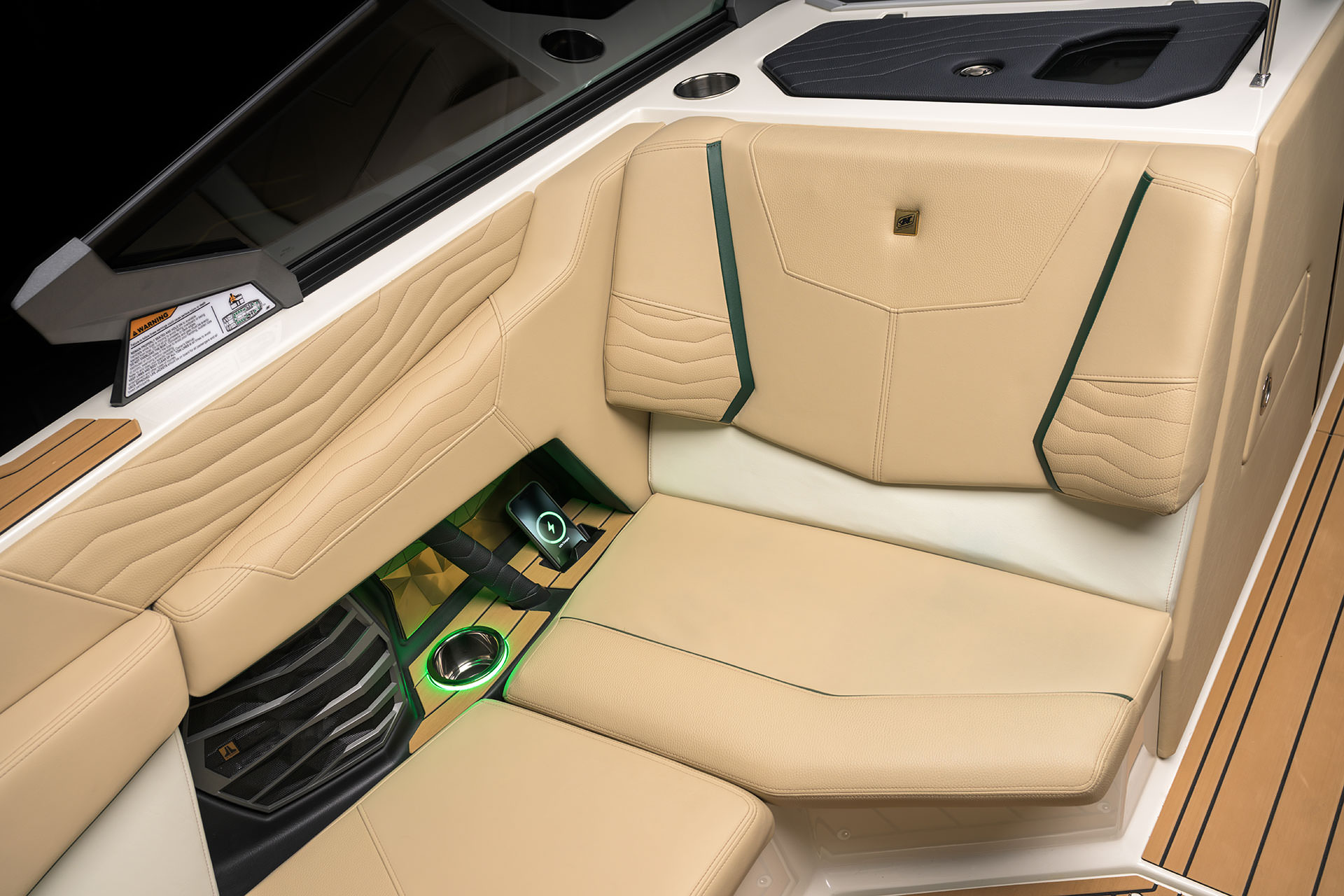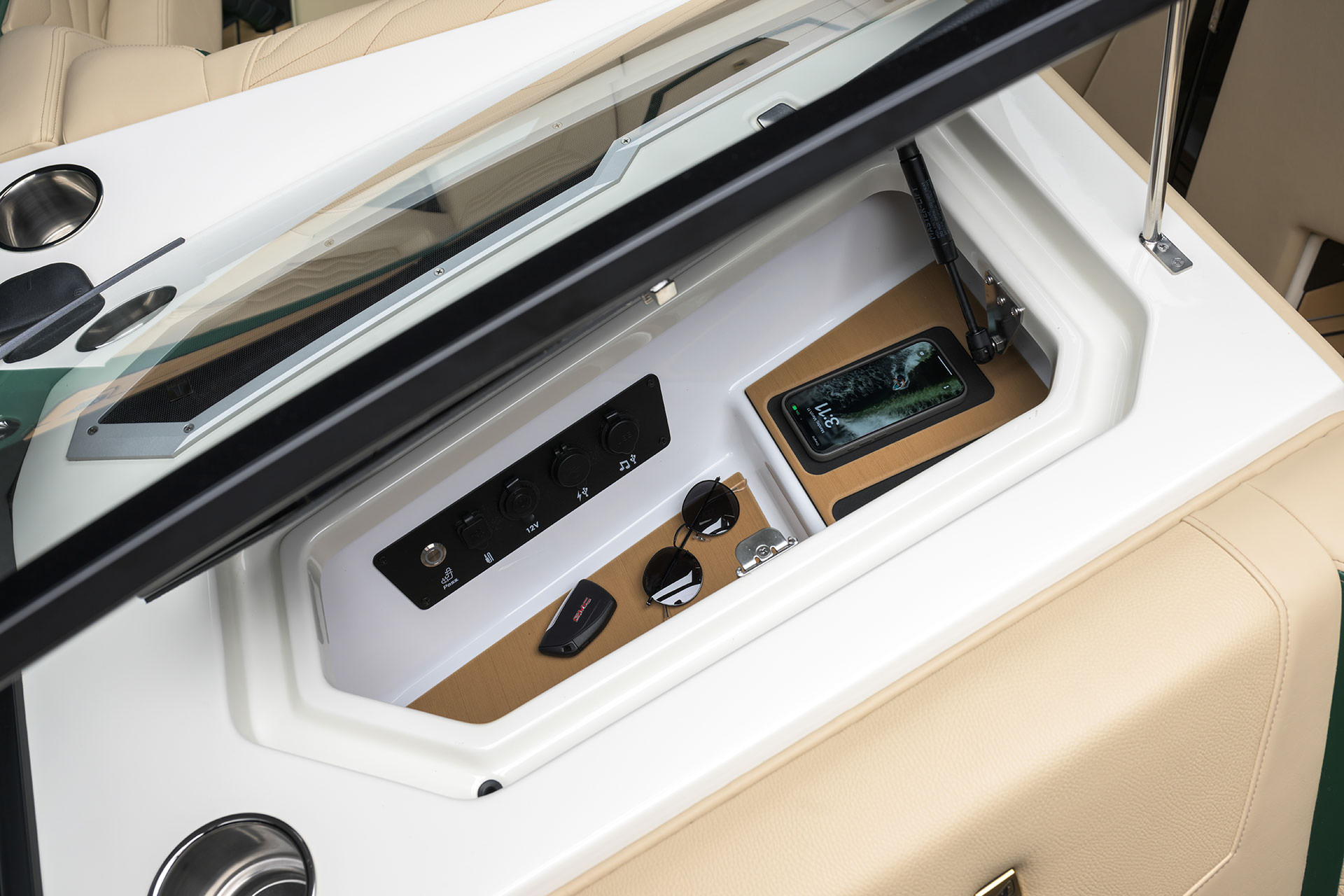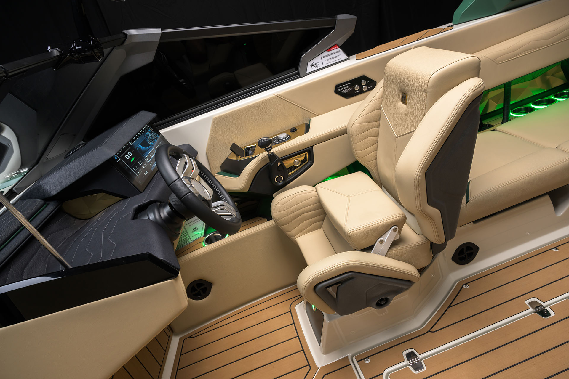 G23のインテリアは、あらゆるところに高級感と人間工学に基づいたデザインが溢れています。よく考えられたドライバーズエリアのおかげで、ドライバーはあらゆるものに簡単に手が届く範囲で運転することができ、ラウンジはその日の予定に合わせてレイアウトを変更することができます。跳ね上げ式の座席オプションが豊富に用意されており、リバーシブルの船尾シートもあるので、誰もがゆったりと座ってすべてのライディングを見ることができます。最高品質の素材と手作りの職人技で、2025 G23のインテリアは究極の場所となります。