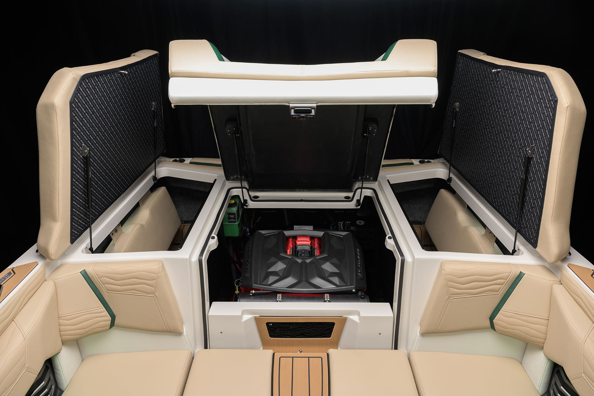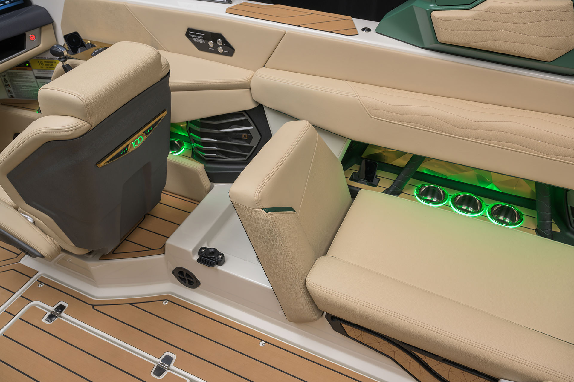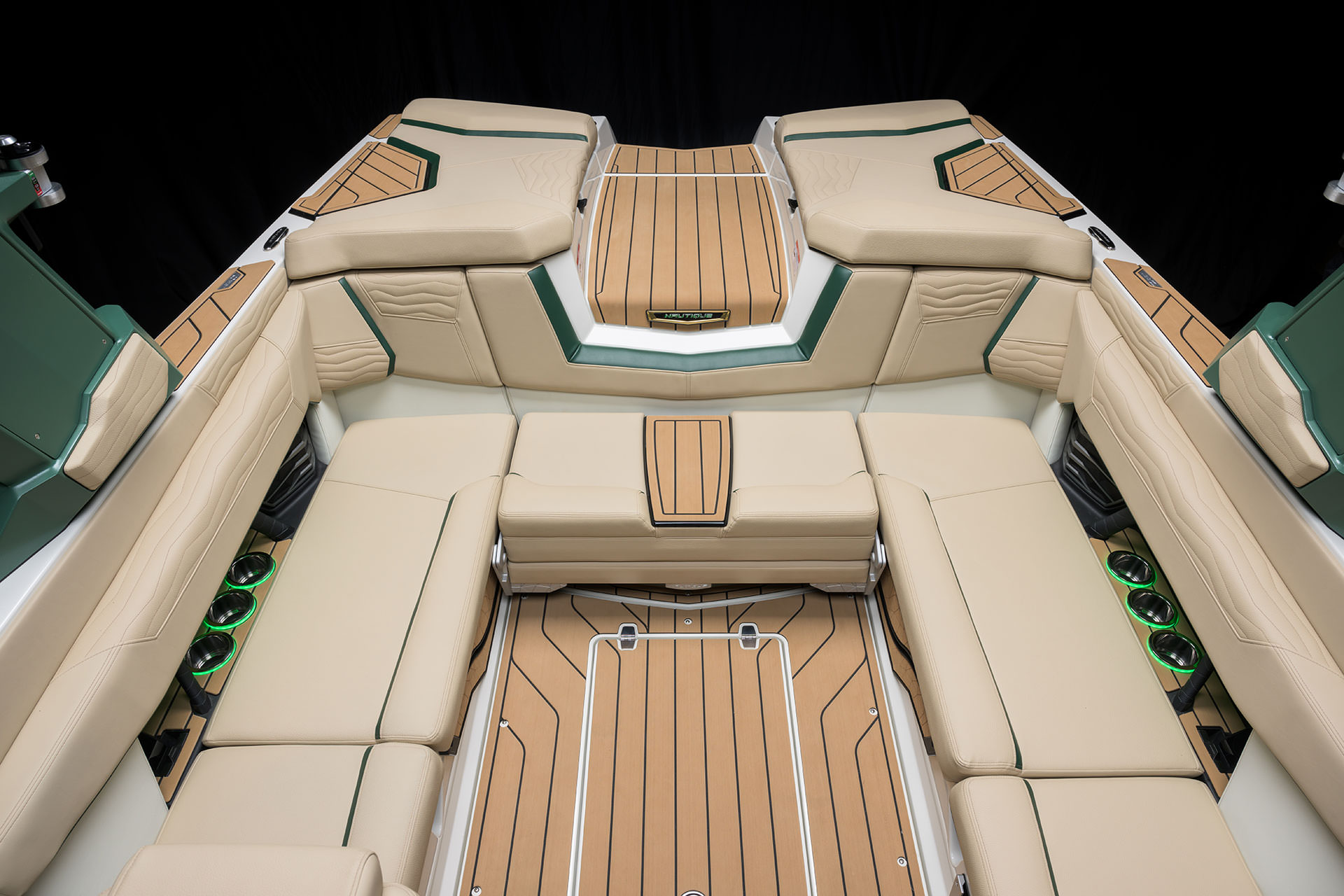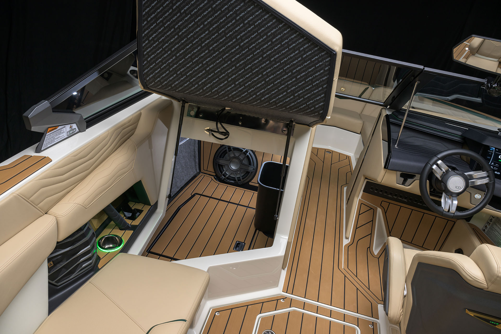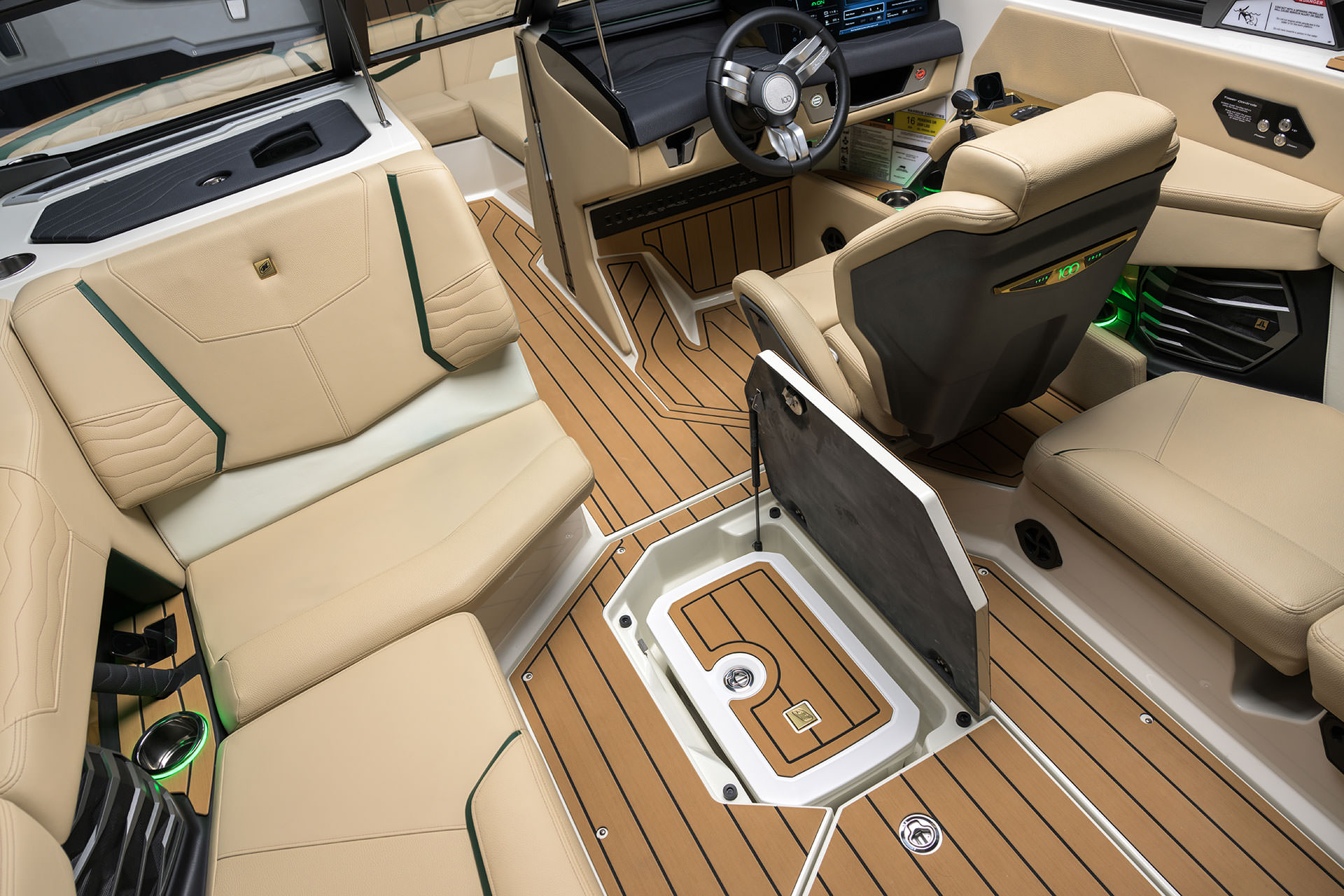 G23のインテリアは、あらゆるところに高級感と人間工学に基づいたデザインが溢れています。よく考えられたドライバーズエリアのおかげで、ドライバーはあらゆるものに簡単に手が届く範囲で運転することができ、ラウンジはその日の予定に合わせてレイアウトを変更することができます。跳ね上げ式の座席オプションが豊富に用意されており、リバーシブルの船尾シートもあるので、誰もがゆったりと座ってすべてのライディングを見ることができます。最高品質の素材と手作りの職人技で、2025 G23のインテリアは究極の場所となります。