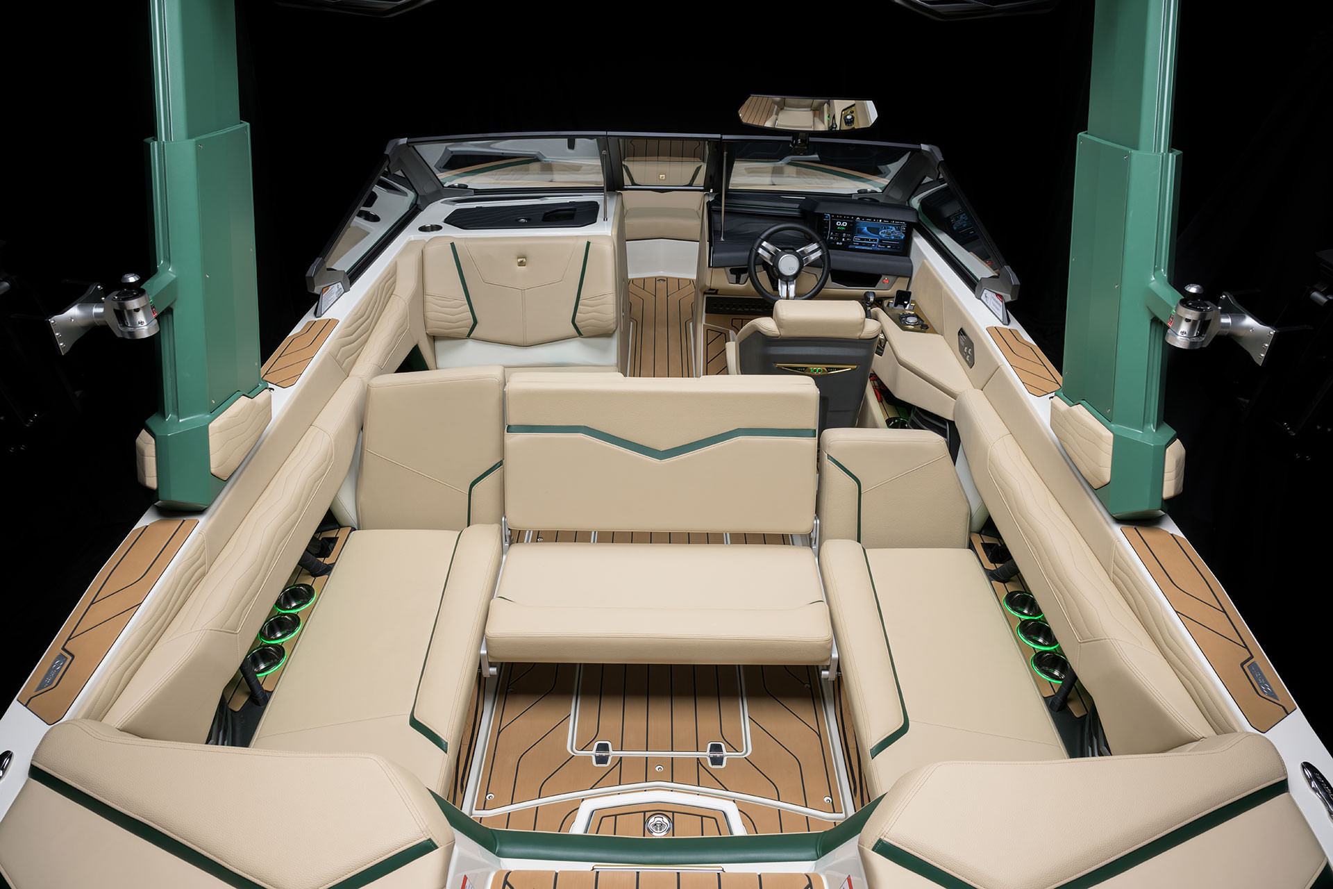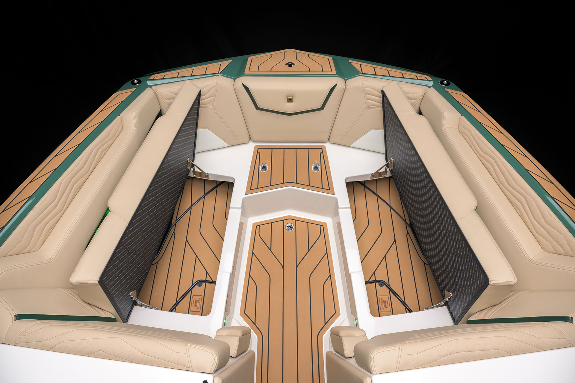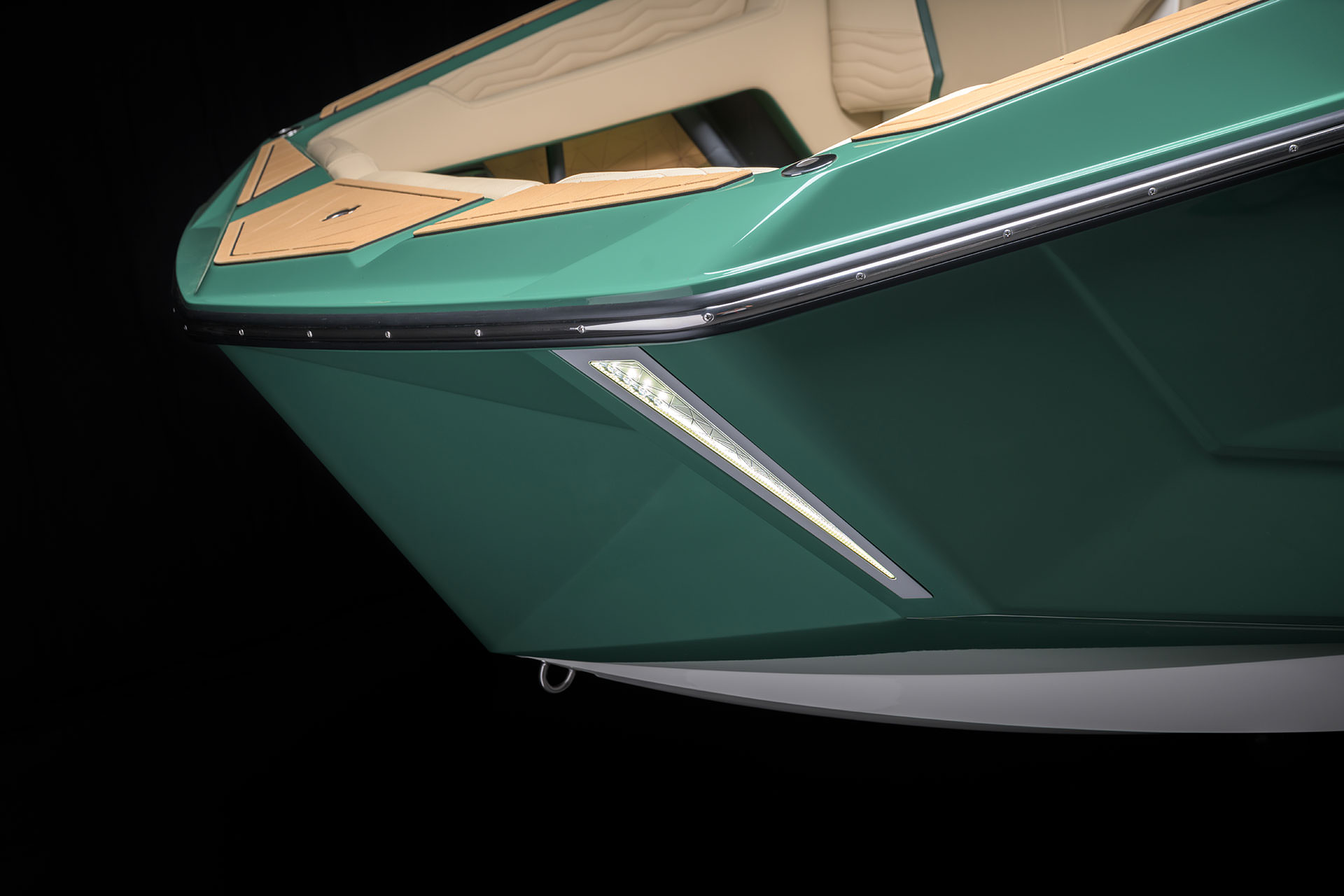 新型G23は、市場にあるウェイクボートの中で最も印象的な外観の 1つを実現しました。当社の最上位モデルであるPARAGONを彷彿とさせる角があるシャープな船首デザインを備えたこの次世代モデルは、比類のない現代的な美観でGシリーズを未来へと導きます。この新しいデザインでは、形状が機能に従い、広い船尾と船首エリアが作られ、夏の間中スタイリッシュに過ごせます。