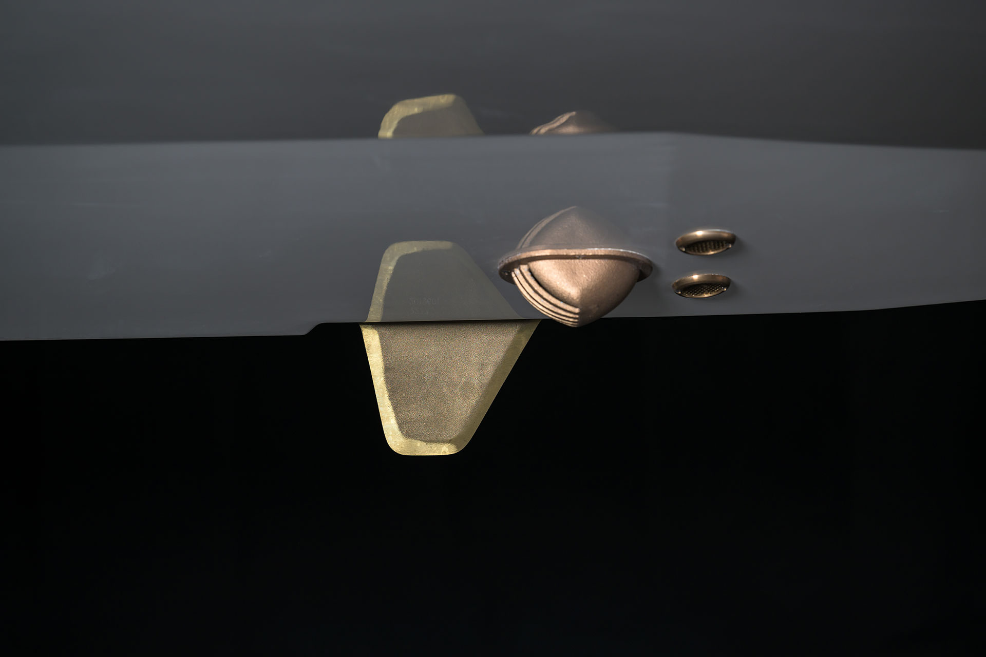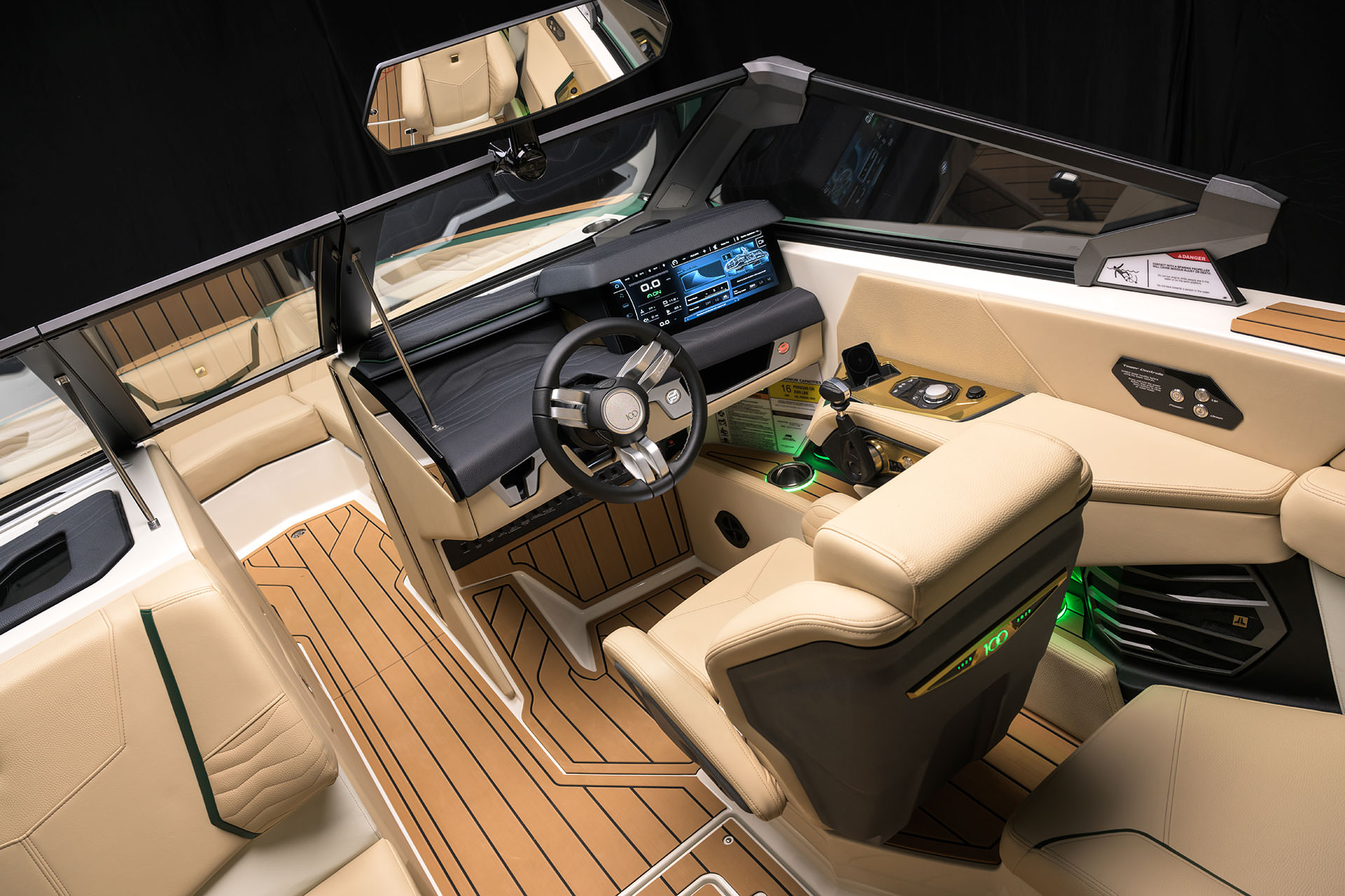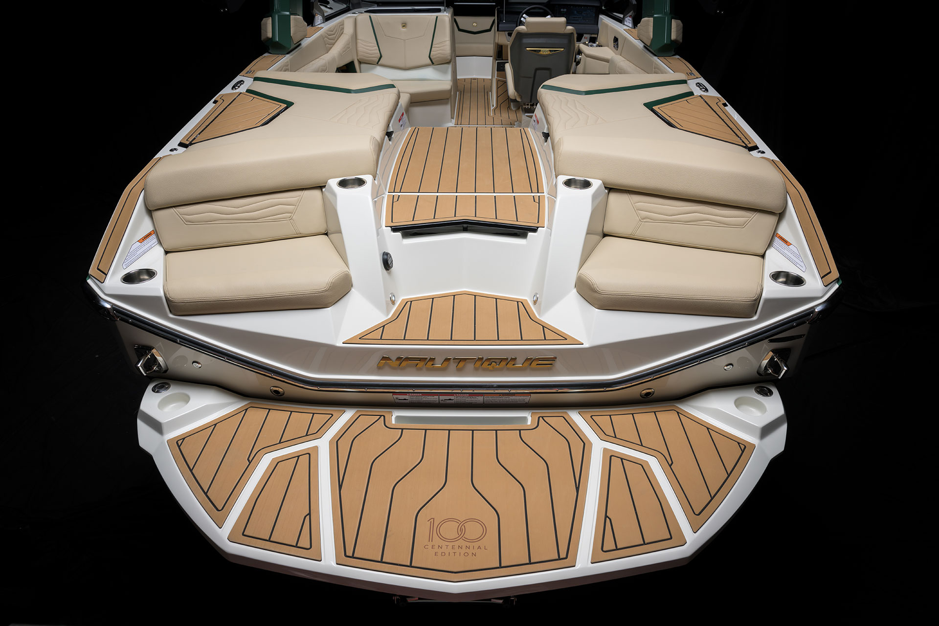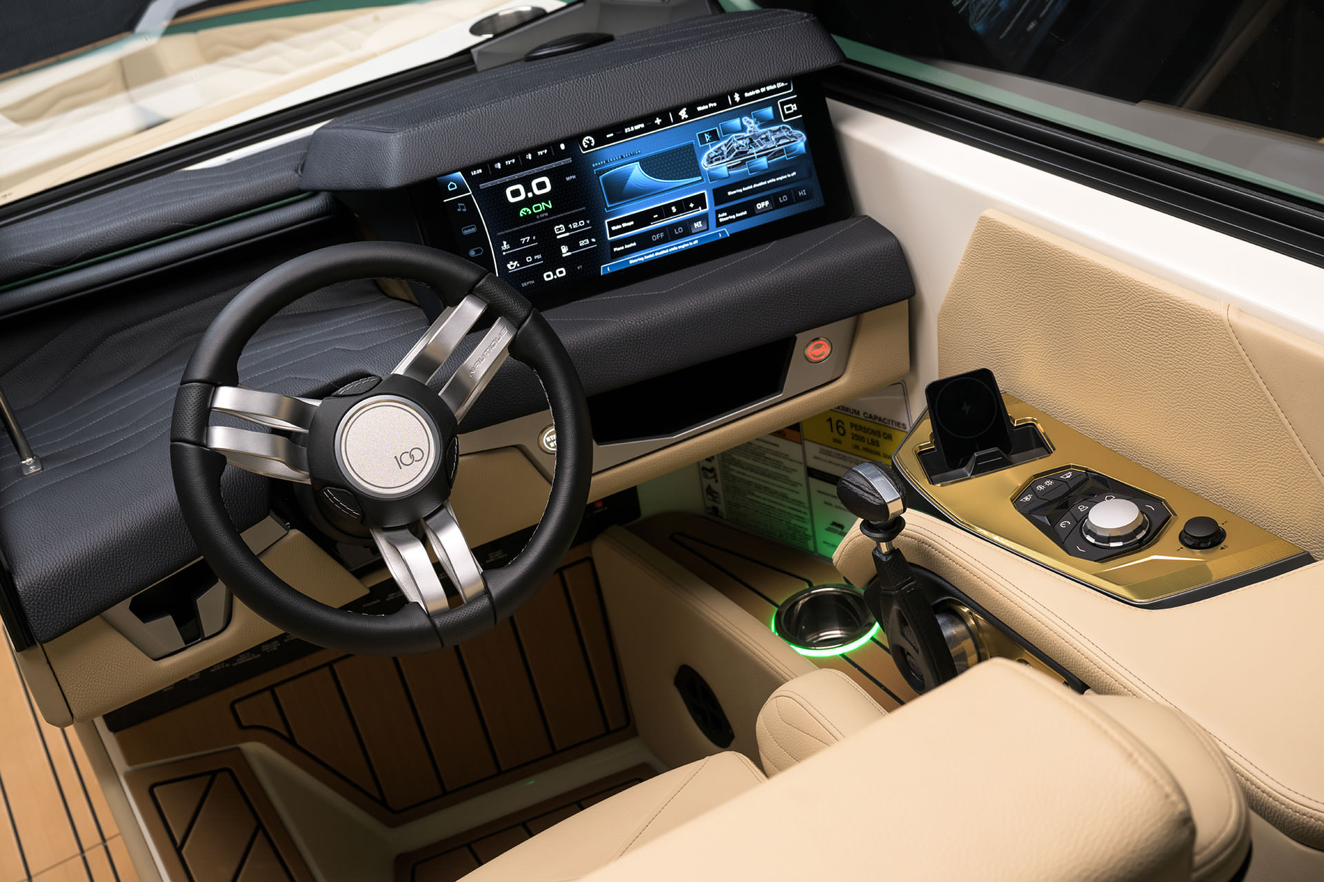 100周年を記念して、センテニアル エディションをご提供できることを誇りに思います。このエディションには、2025年モデルのすべてのボートに特別な装飾が加えられています。G23のドライバーズシートには、当社の代表的なセンテニアルロゴがステアリングホイールに刻まれており、ドライバーズシートの背面にはバッジとして表示されています。G23の電源を入れると、センテニアルロゴが LINCパノレイタッチスクリーンに表示されます。このロゴは、後部プラットフォームの SEADECKノンスキッドにレーザー刻印され、ガンネル上部のビレットプレートに機械刻印され、グローブ ボックスウィンドウの下側にレーザー刻印されています。2025年モデルのみで利用可能な限定ゲルコートカラー「センテニアル ブラック メタル フレーク」は、深みのあるオニキス ブラックとミディアム ゴールド フレークのユニークなブレンドで構成され、当社の 100 周年記念のエッセンスを表しています。