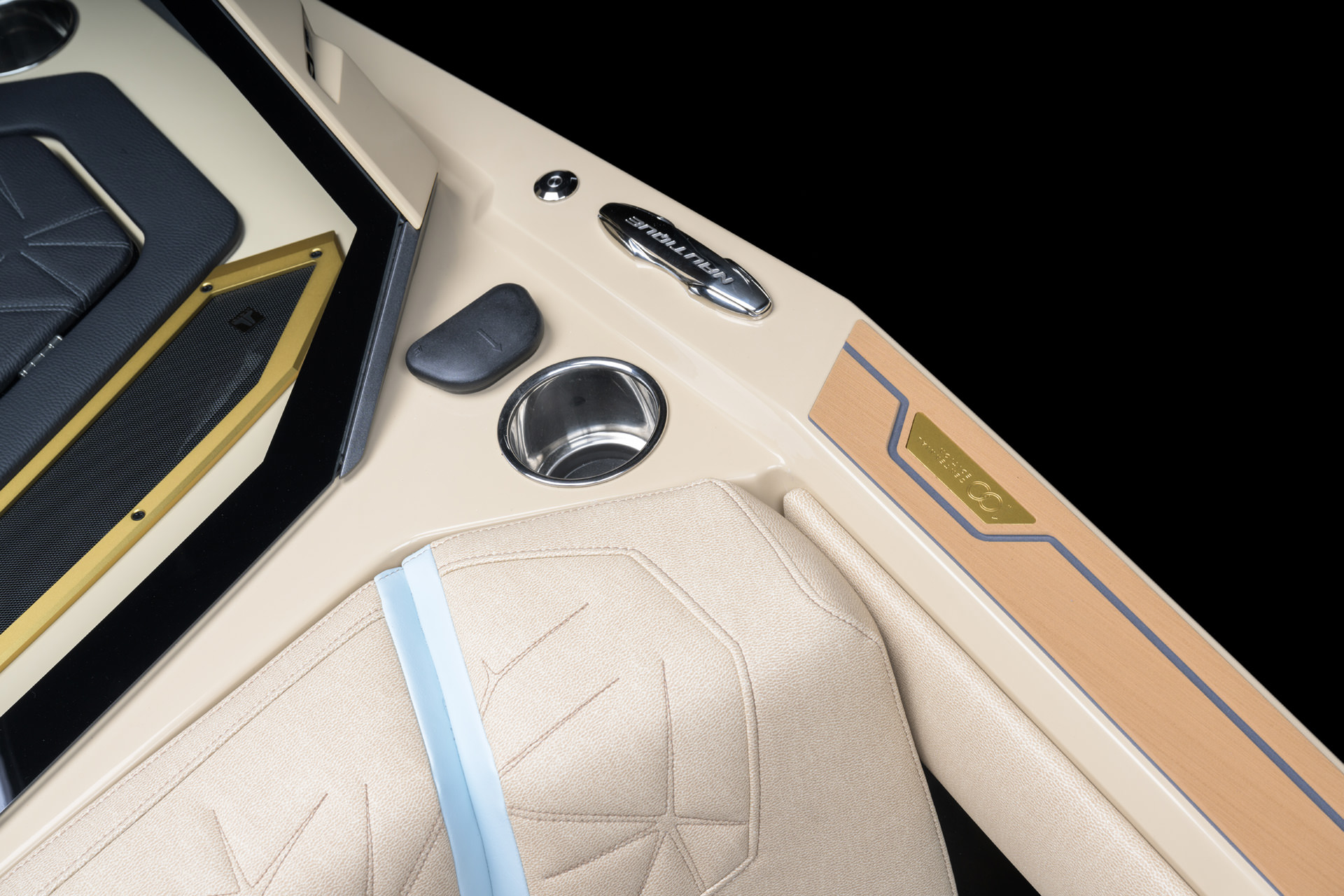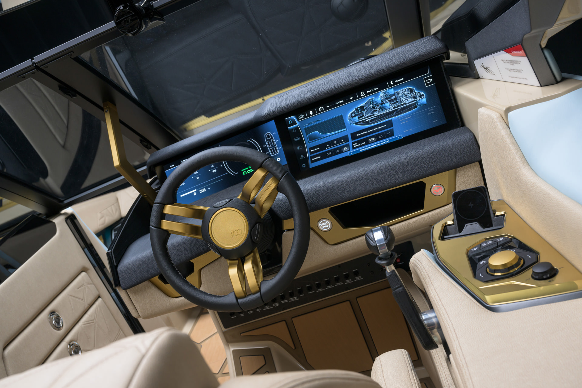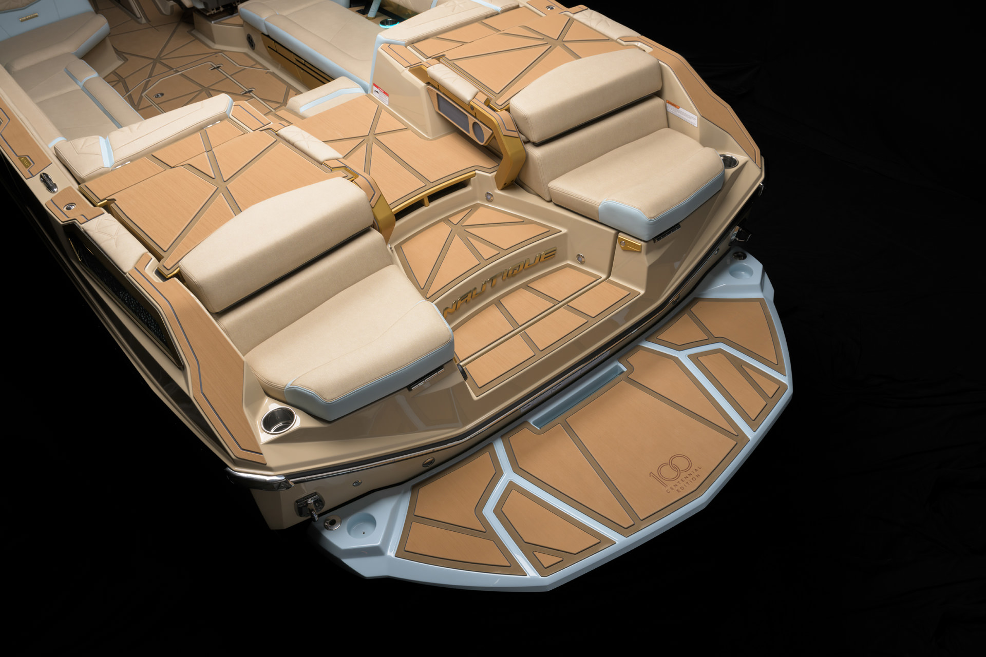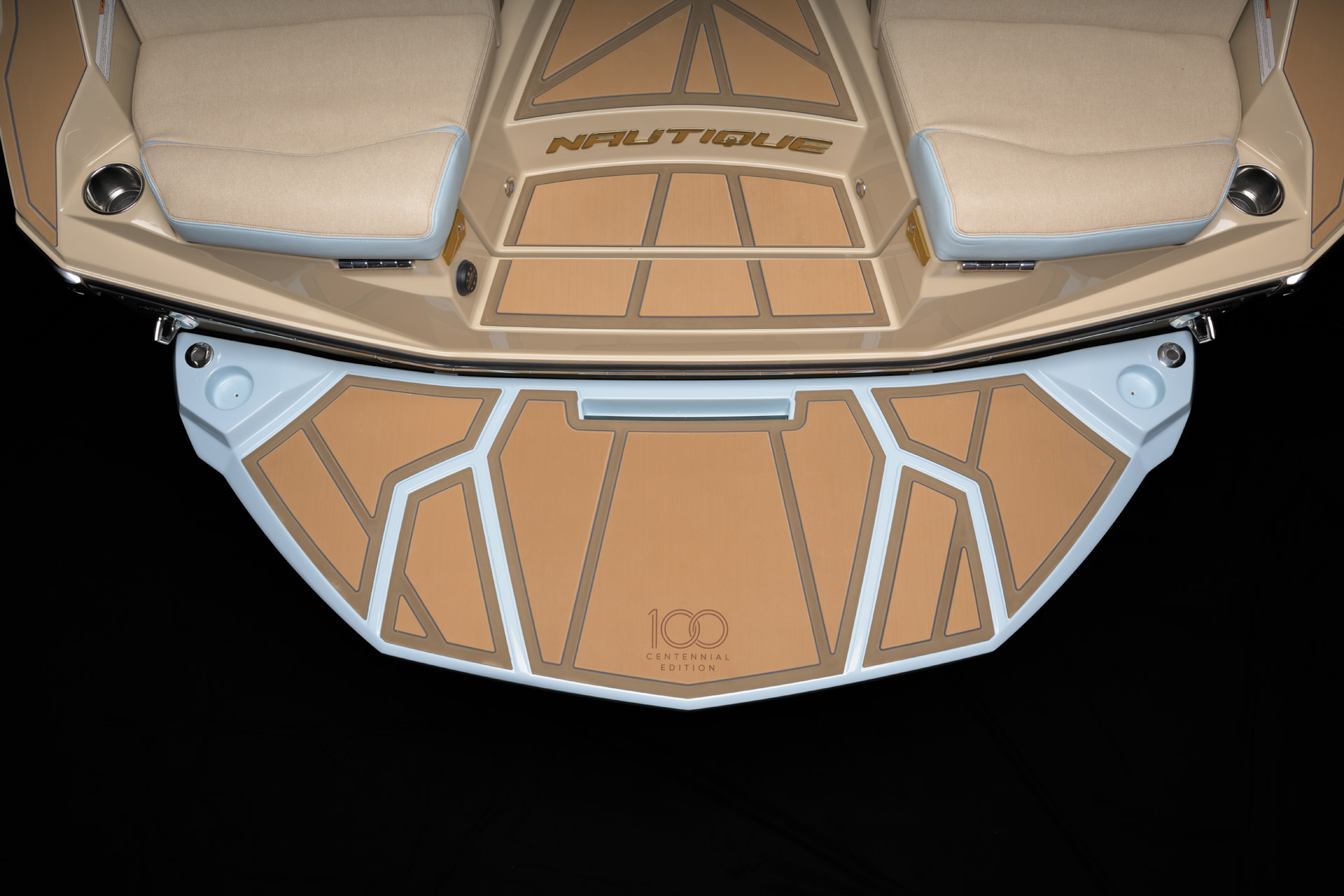 100周年を記念して、センテニアル エディションをご提供できることを誇りに思います。このエディションには、2025年モデルのすべてのボートに特別な装飾が加えられています。G25 PARAGONのドライバーズシートには、当社の代表的なセンテニアルロゴがステアリングホイールに刻まれており、ドライバーズシートの背面にはバッジとして表示されています。G25 PARAGONの電源を入れると、センテニアルロゴが LINCパノレイタッチスクリーンに表示されます。このロゴは、後部プラットフォームの SEADECKノンスキッドにレーザー刻印され、ガンネル上部のビレットプレートに機械刻印され、グローブ ボックスウィンドウの下側にレーザー刻印されています。PARAGONはこのモデル限定で、伸縮式フライト コントロール タワー® からの 100周年記念ロゴライトプロジェクションも含まれます。2025年モデルのみで利用可能な限定ゲルコートカラー「センテニアル ブラック メタル フレーク」は、深みのあるオニキス ブラックとミディアム ゴールド フレークのユニークなブレンドで構成され、当社の 100 周年記念のエッセンスを表しています。