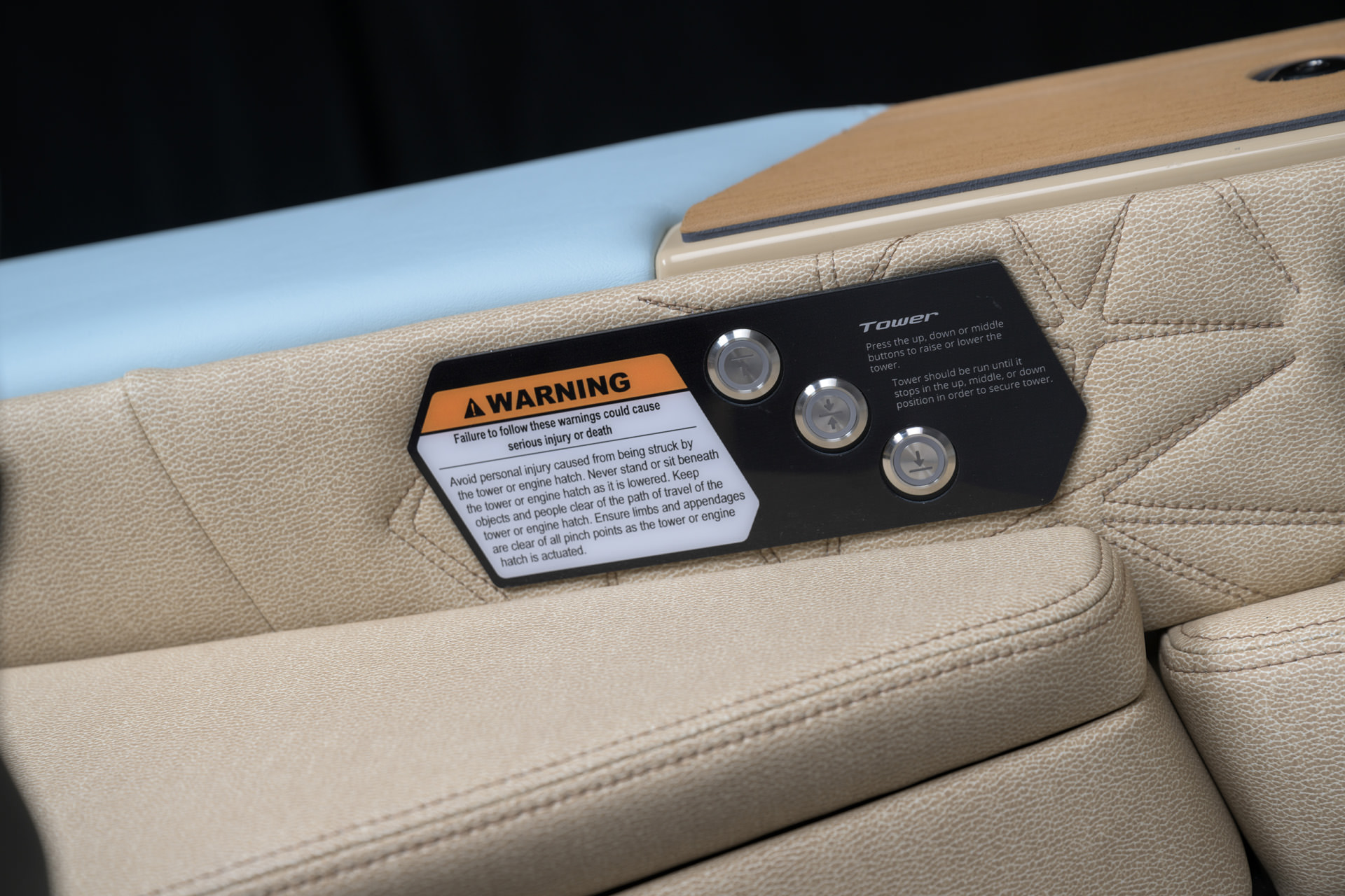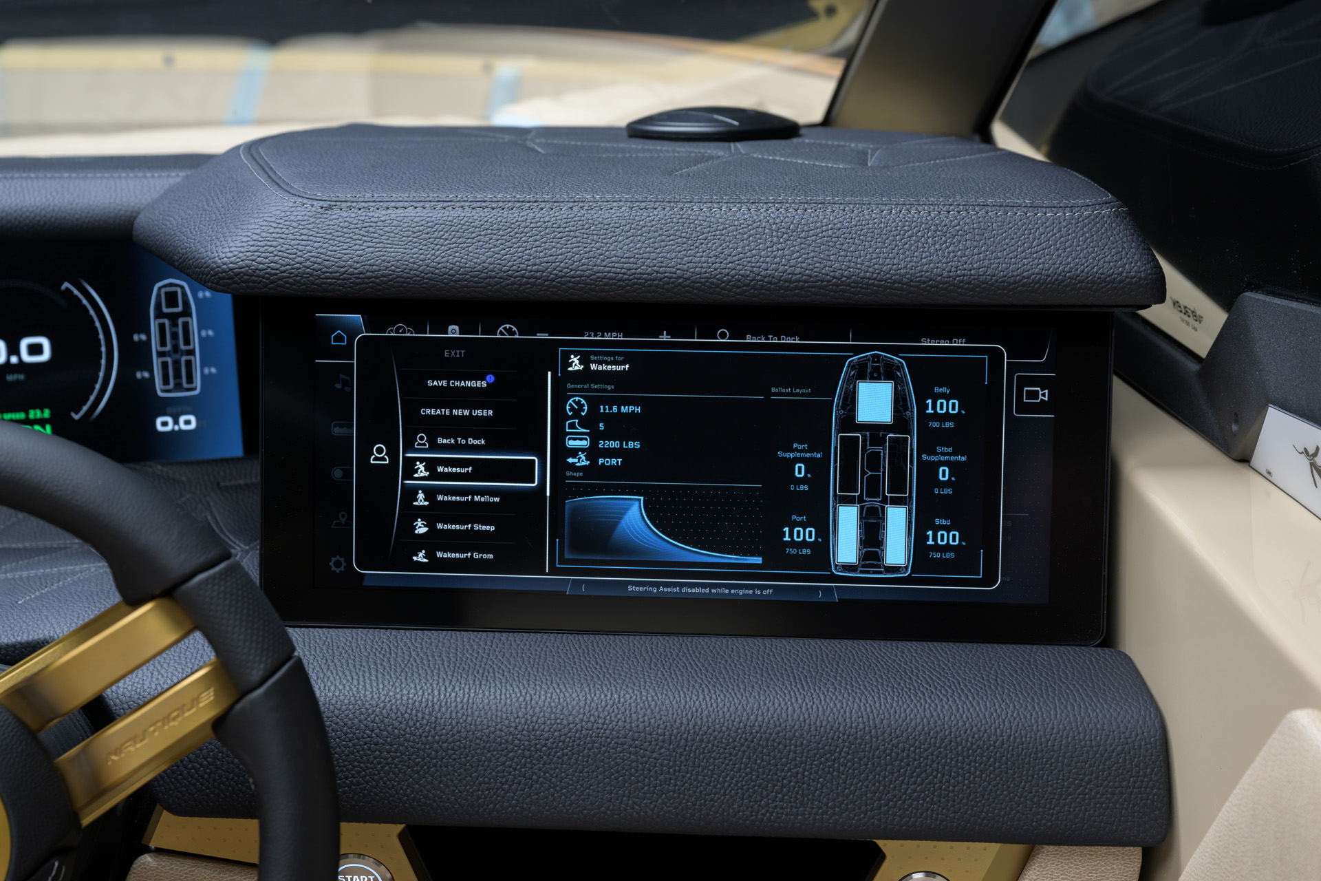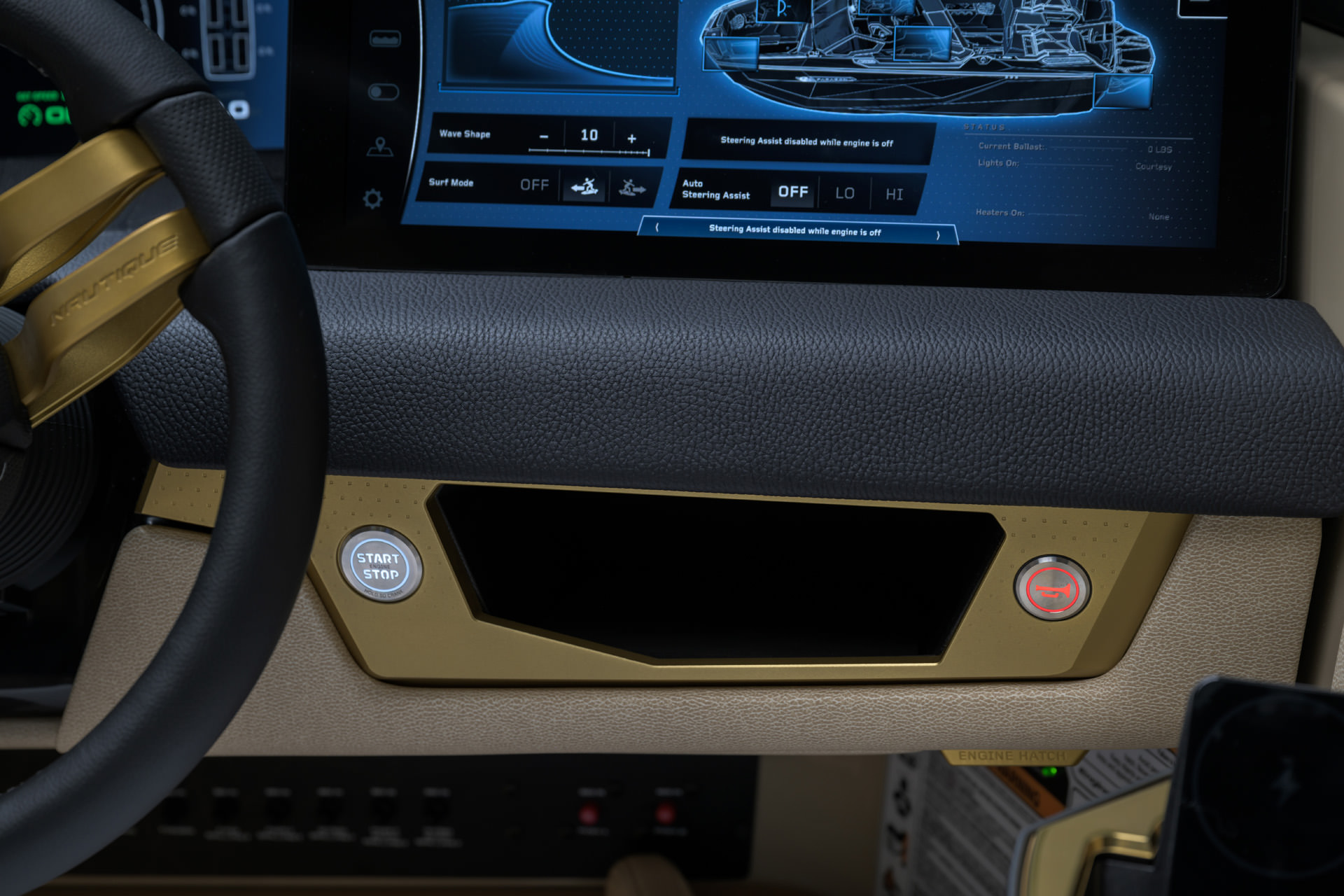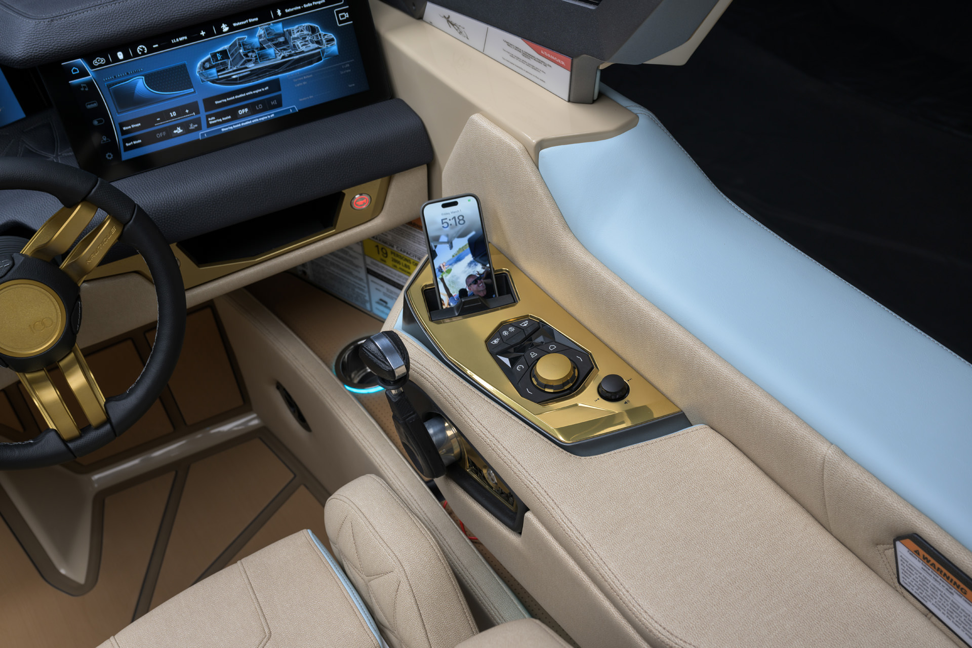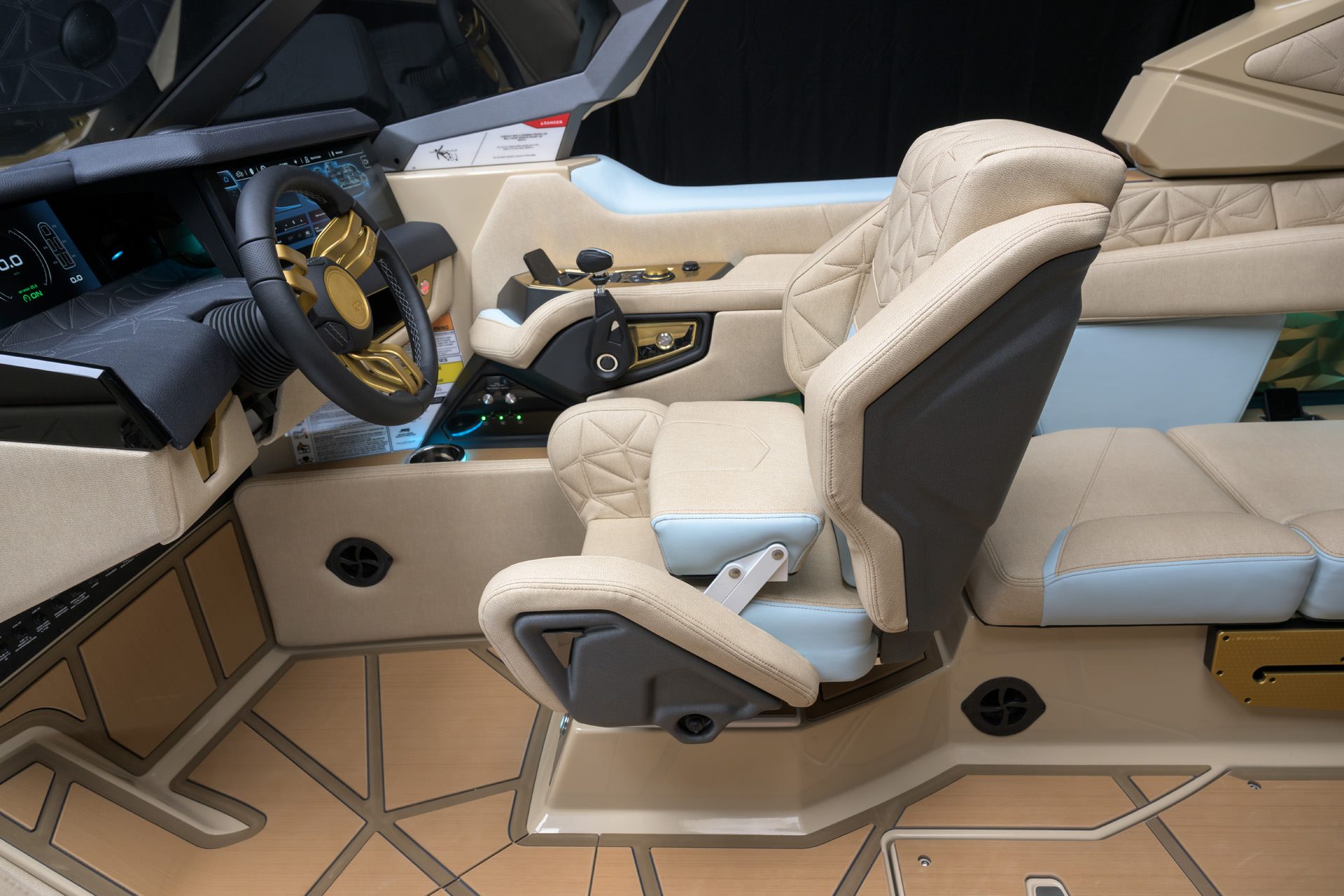 100周年を記念して、センテニアル エディションをご提供できることを誇りに思います。このエディションには、2025年モデルのすべてのボートに特別な装飾が加えられています。G25 PARAGONのドライバーズシートには、当社の代表的なセンテニアルロゴがステアリングホイールに刻まれており、ドライバーズシートの背面にはバッジとして表示されています。G25 PARAGONの電源を入れると、センテニアルロゴが LINCパノレイタッチスクリーンに表示されます。このロゴは、後部プラットフォームの SEADECKノンスキッドにレーザー刻印され、ガンネル上部のビレットプレートに機械刻印され、グローブ ボックスウィンドウの下側にレーザー刻印されています。PARAGONはこのモデル限定で、伸縮式フライト コントロール タワー® からの 100周年記念ロゴライトプロジェクションも含まれます。2025年モデルのみで利用可能な限定ゲルコートカラー「センテニアル ブラック メタル フレーク」は、深みのあるオニキス ブラックとミディアム ゴールド フレークのユニークなブレンドで構成され、当社の 100 周年記念のエッセンスを表しています。