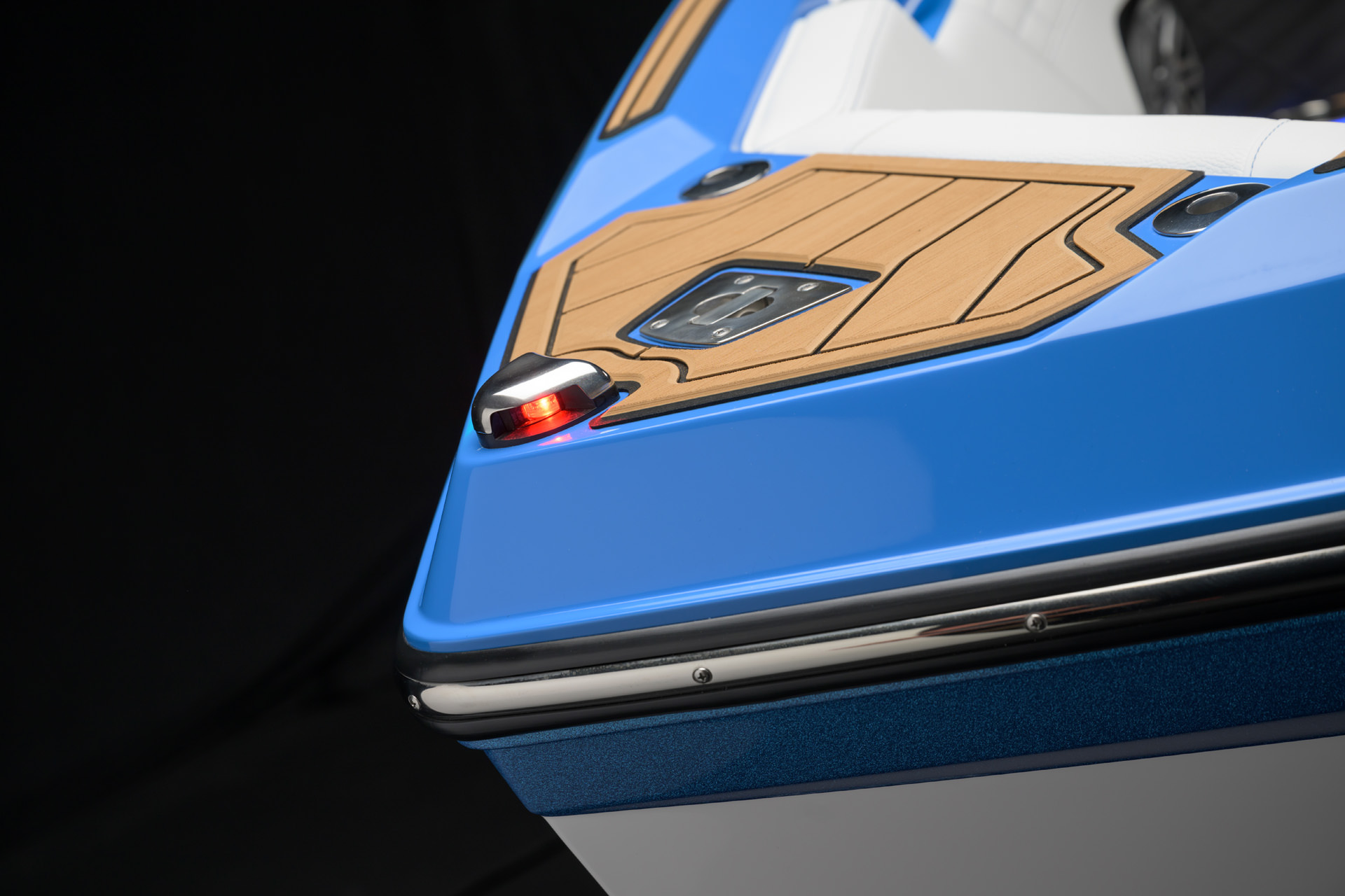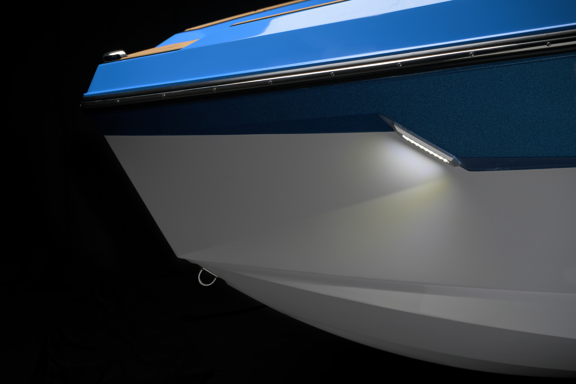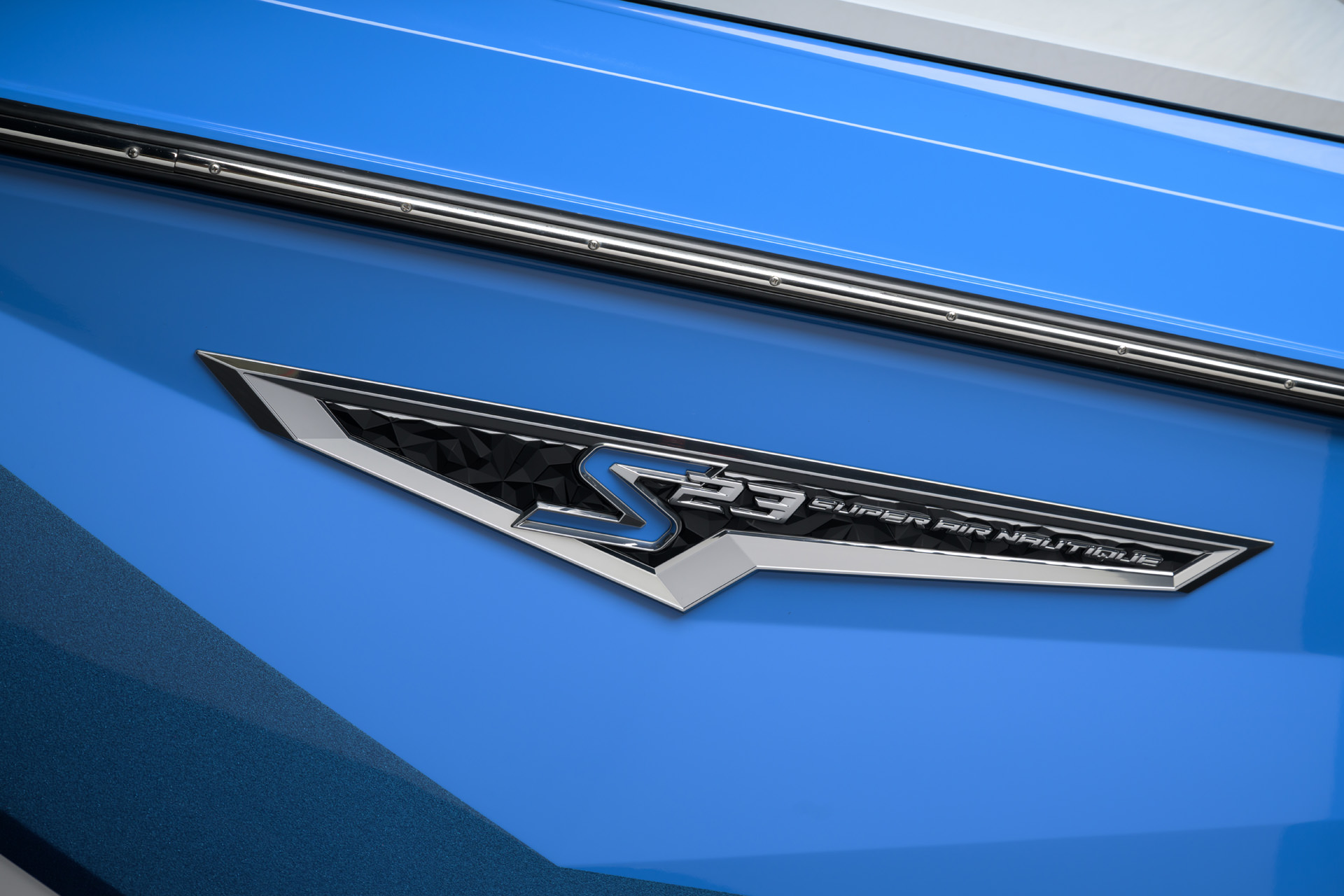 SUPER AIR NAUTIQUE S23の存在感は、水上で注目を集めます。伝統的な船首のピンノーズデザインと現代的な外観を融合したこのモデルは、Sシリーズの視覚的な特徴を凝縮しています。船首から始まり船体側面に沿って流れる印象的な輪郭を融合することで、この現代的なボートの全体的な外観が向上します。
