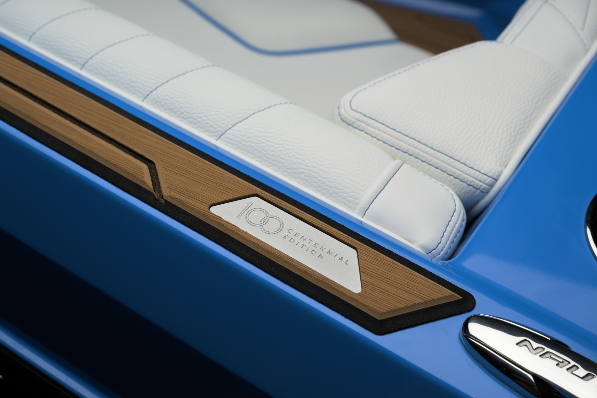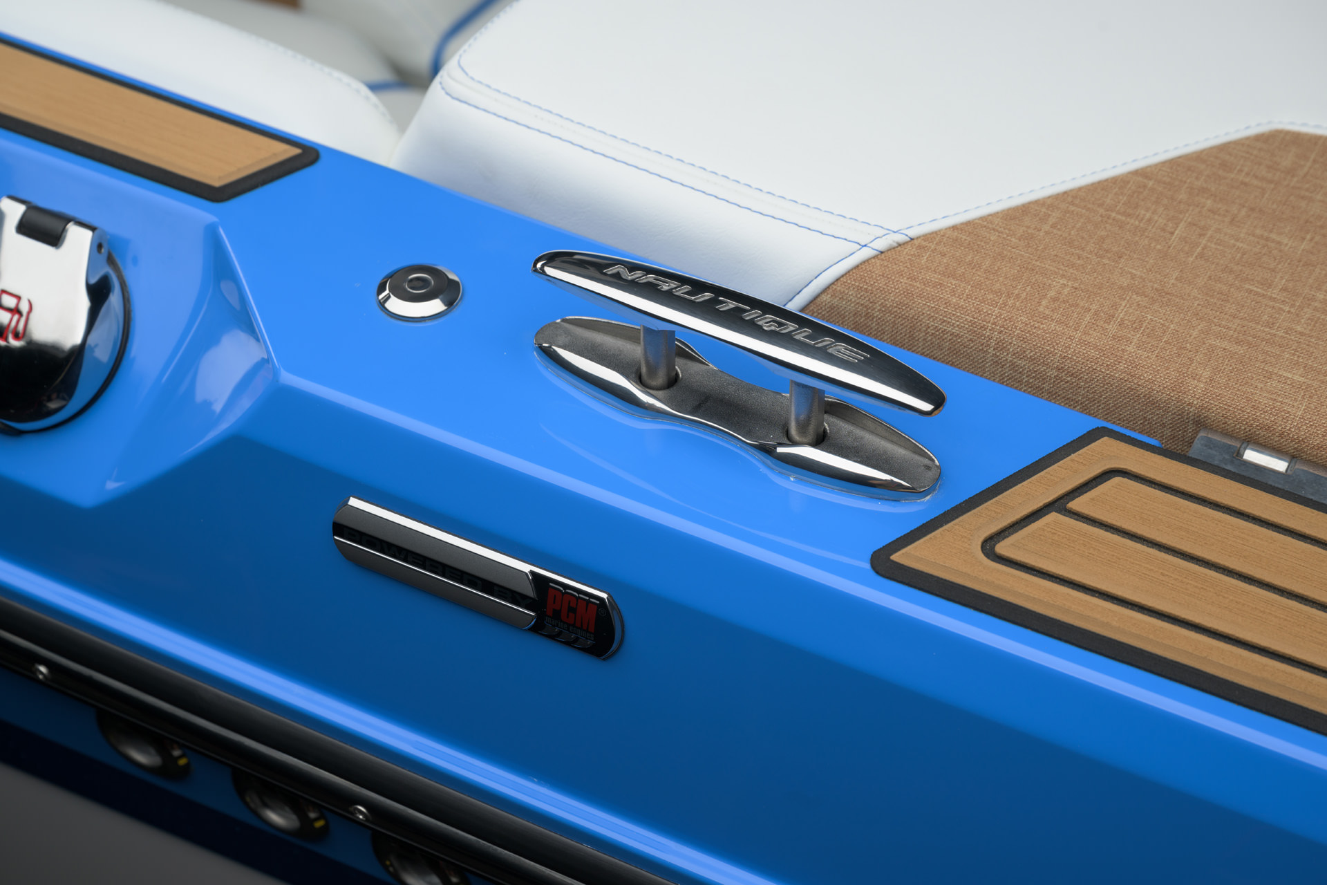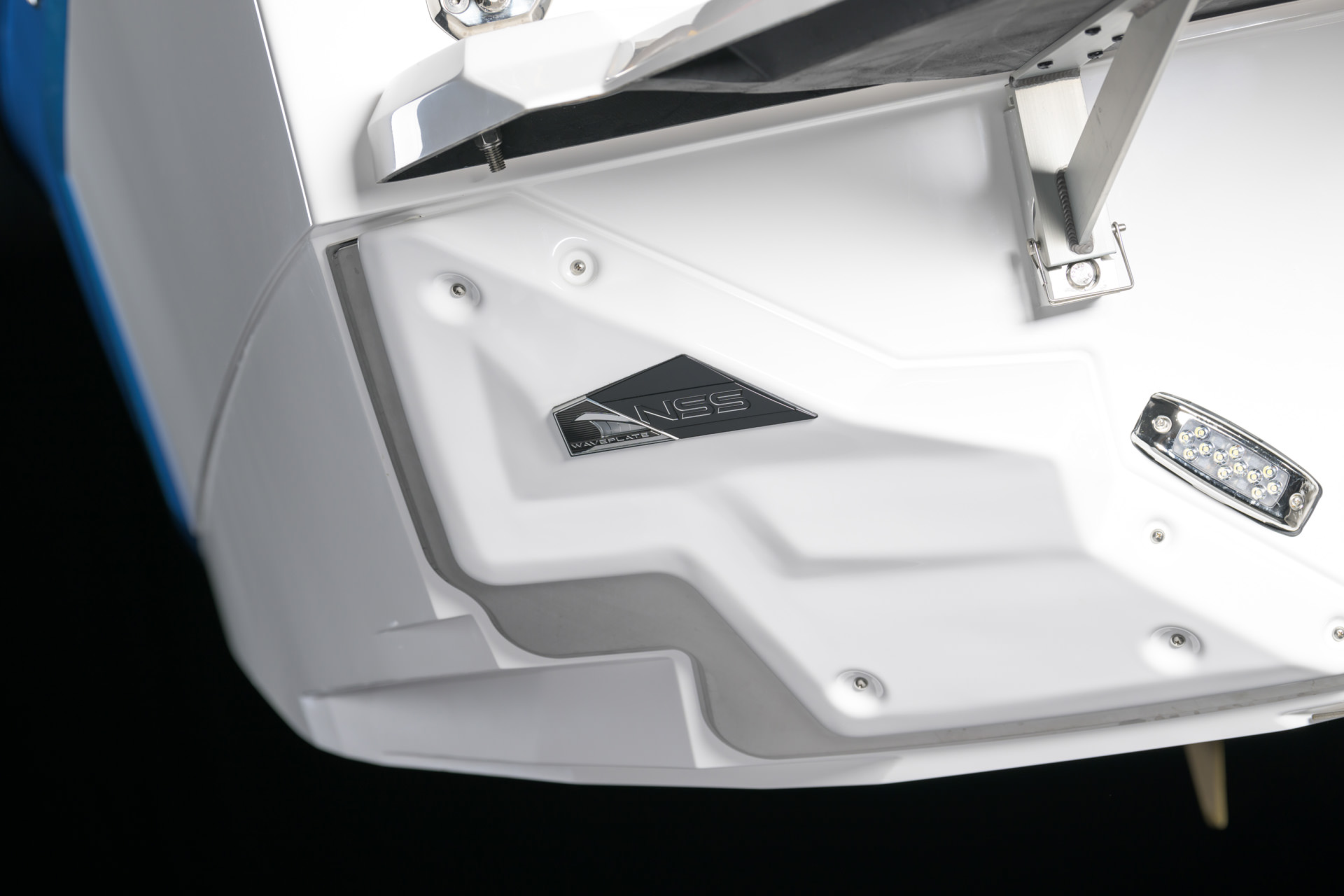 SUPER AIR NAUTIQUE S23の存在感は、水上で注目を集めます。伝統的な船首のピンノーズデザインと現代的な外観を融合したこのモデルは、Sシリーズの視覚的な特徴を凝縮しています。船首から始まり船体側面に沿って流れる印象的な輪郭を融合することで、この現代的なボートの全体的な外観が向上します。