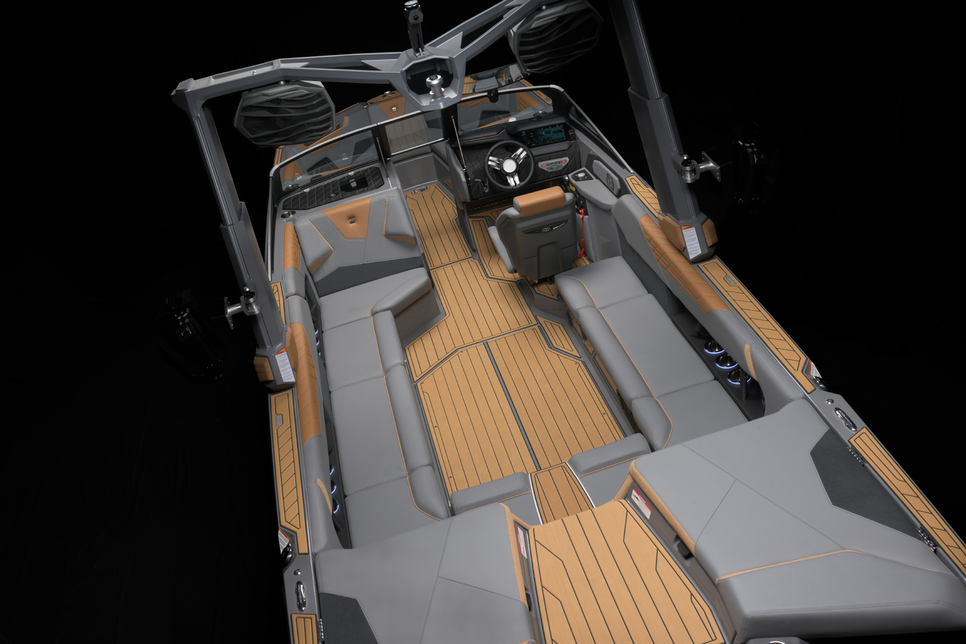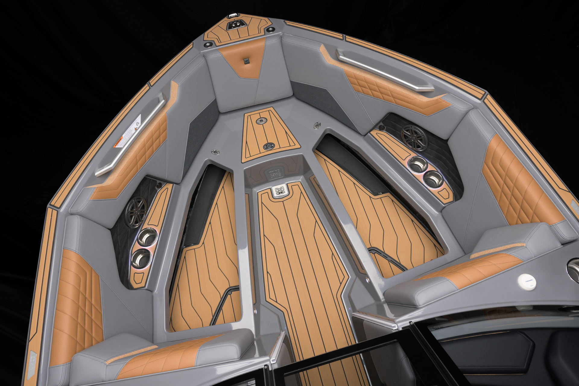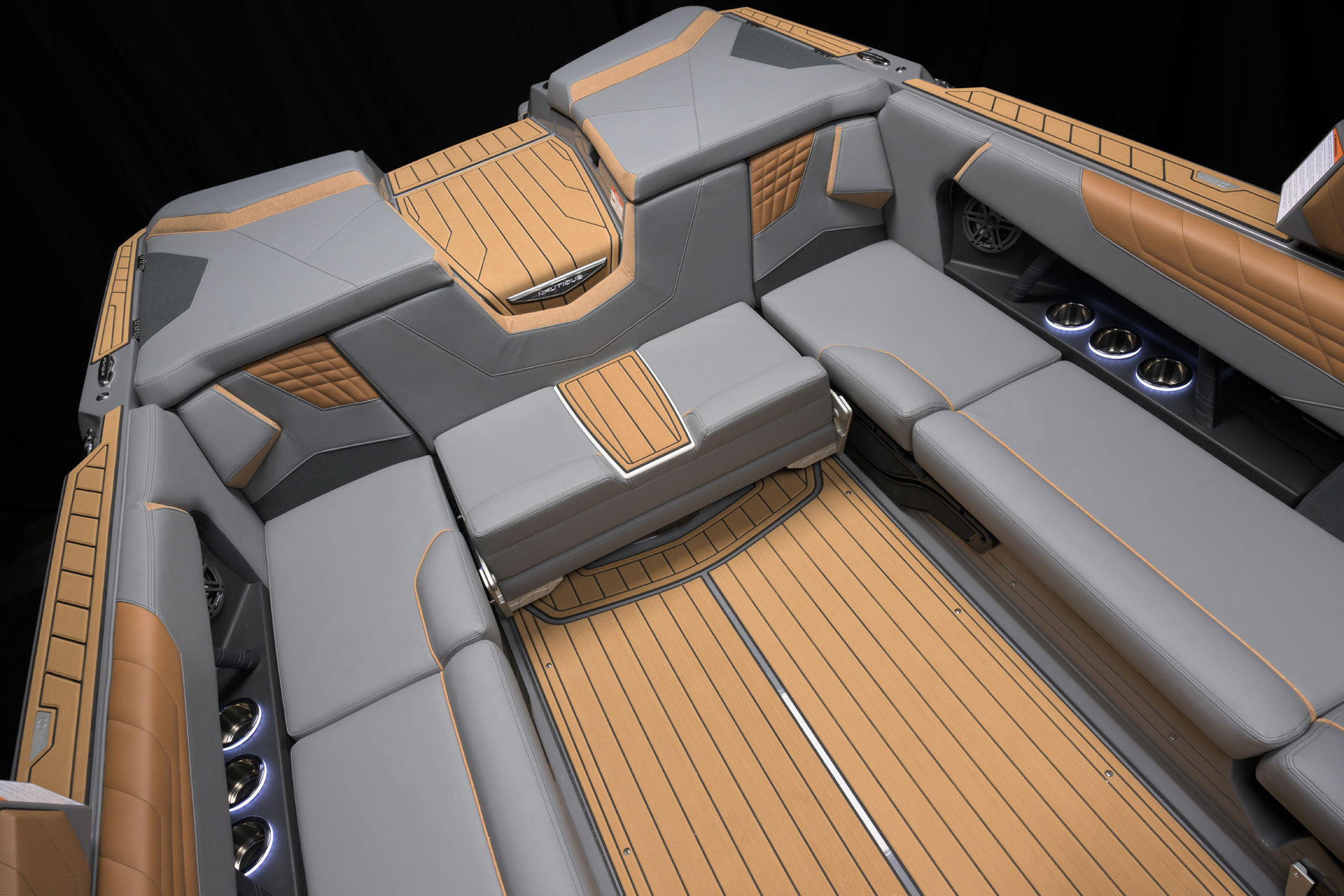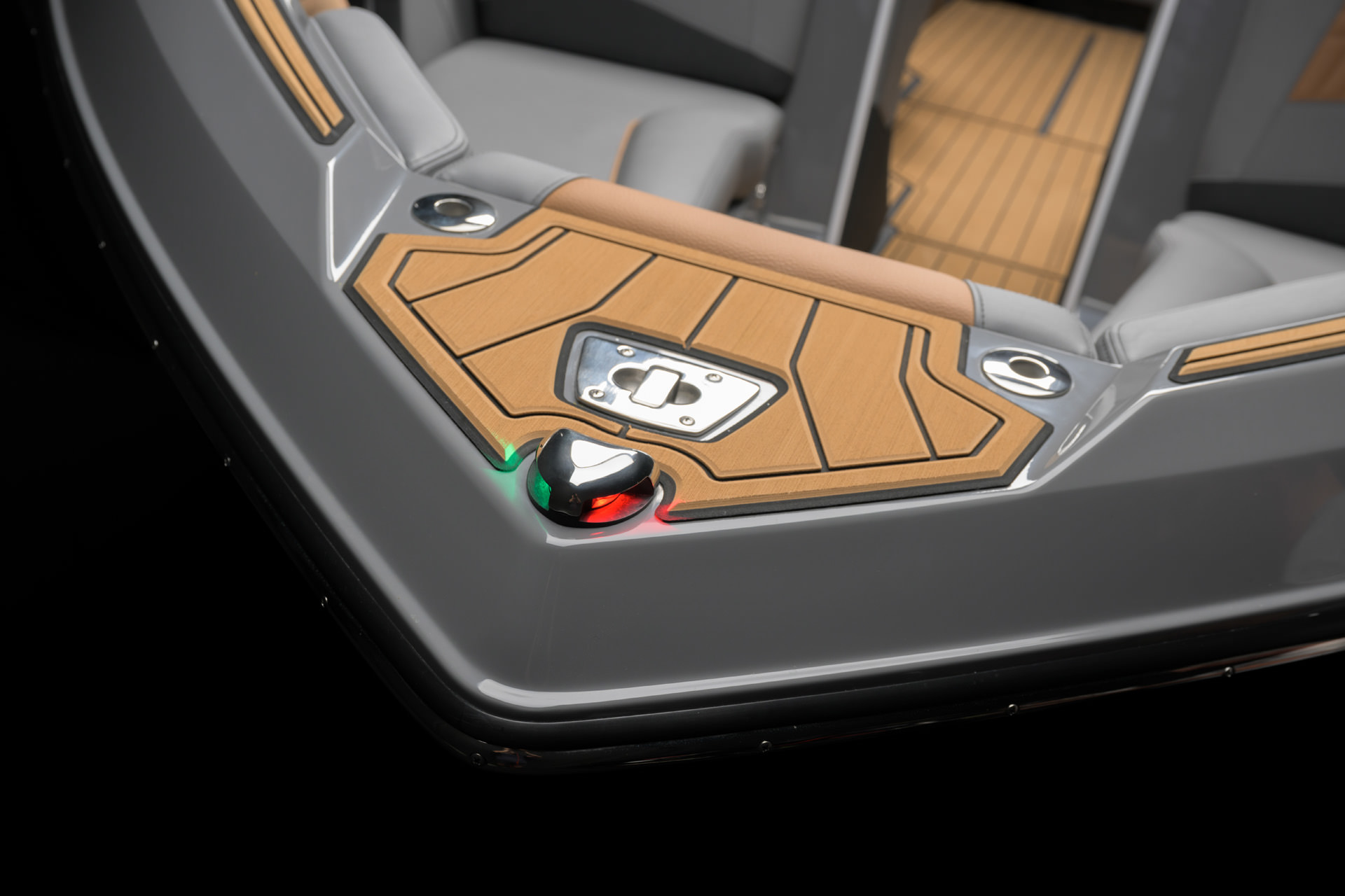 SUPER AIR NAUTIQUE S25は、水上で印象的な外観を纏っています。Sシリーズの全体的なデザイン美学には、シャープなラインと現代的なデザインが組み込まれており、これらが完璧に融合してS25に息を呑むような外観を与えています。従来のピンノーズと組み合わせた流線型の形状により、2025 SUPER AIR NAUTIQUE S25は、大規模なモダンクラシックとなっています。