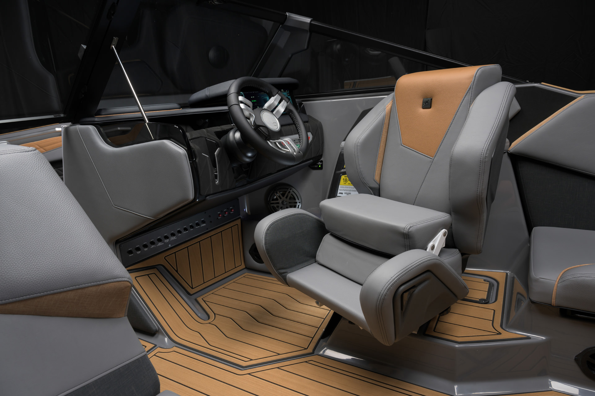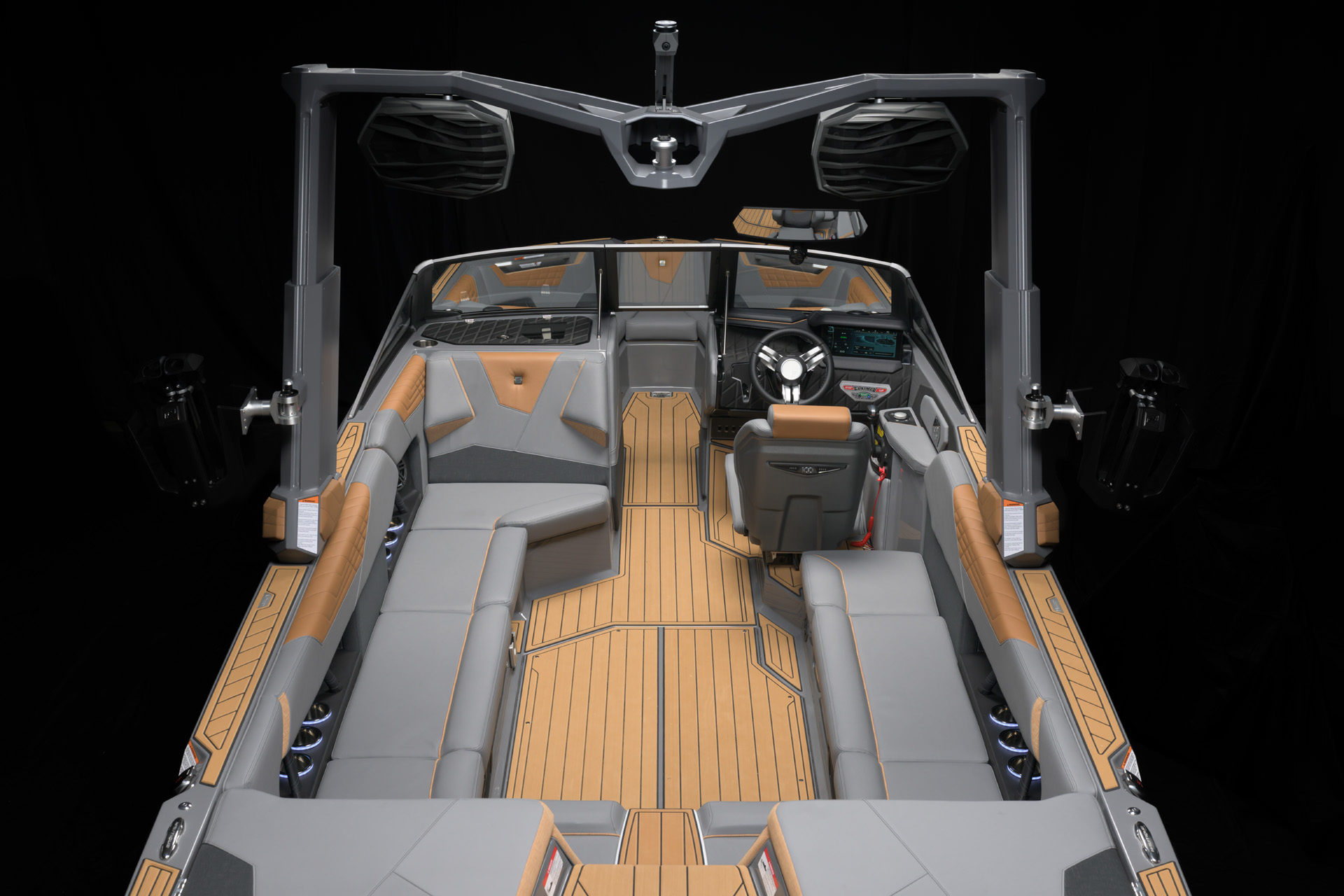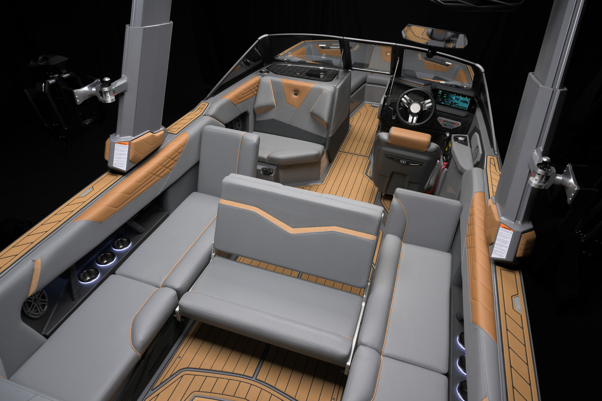 SUPER AIR NAUTIQUE S25は、水上で印象的な外観を纏っています。Sシリーズの全体的なデザイン美学には、シャープなラインと現代的なデザインが組み込まれており、これらが完璧に融合してS25に息を呑むような外観を与えています。従来のピンノーズと組み合わせた流線型の形状により、2025 SUPER AIR NAUTIQUE S25は、大規模なモダンクラシックとなっています。