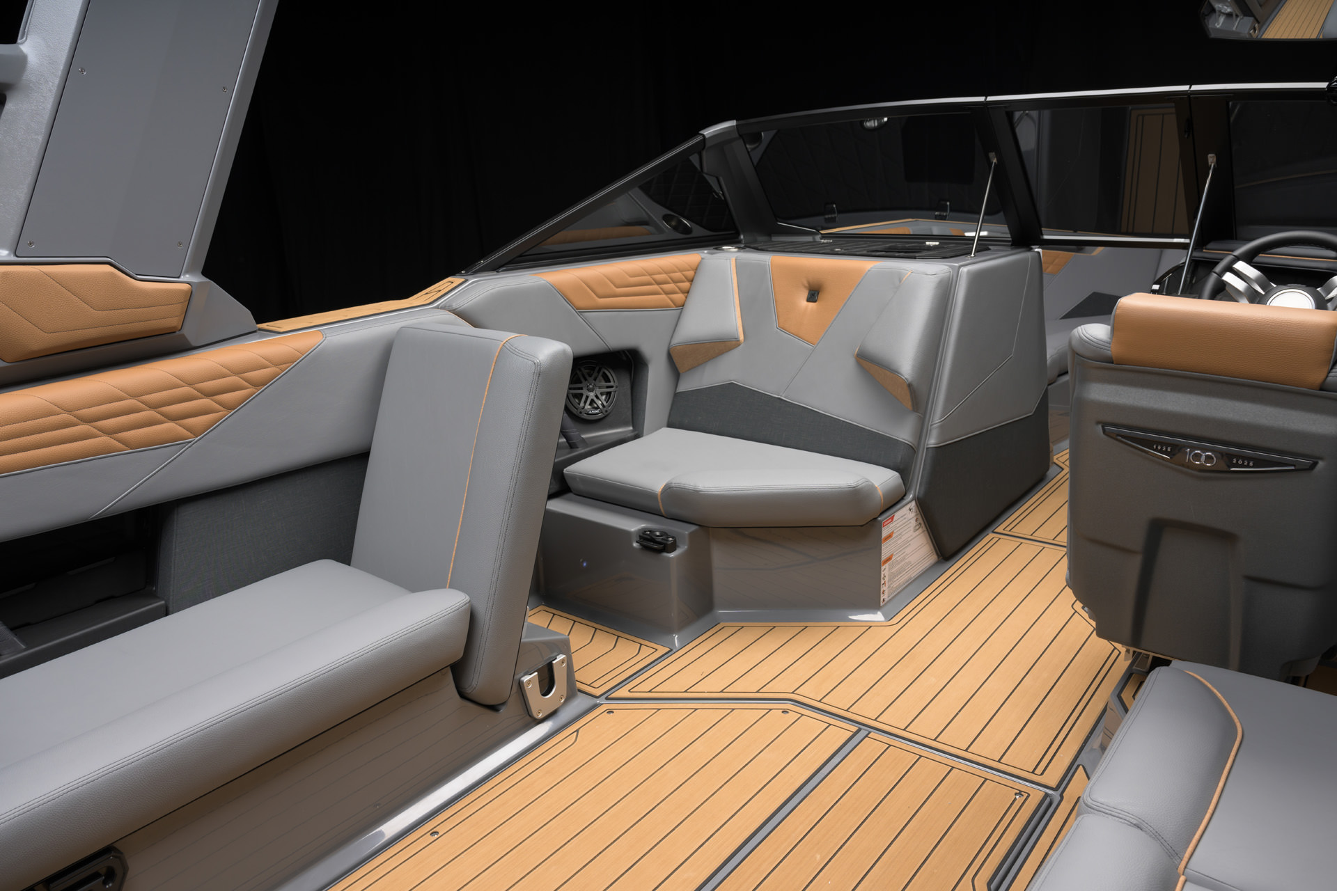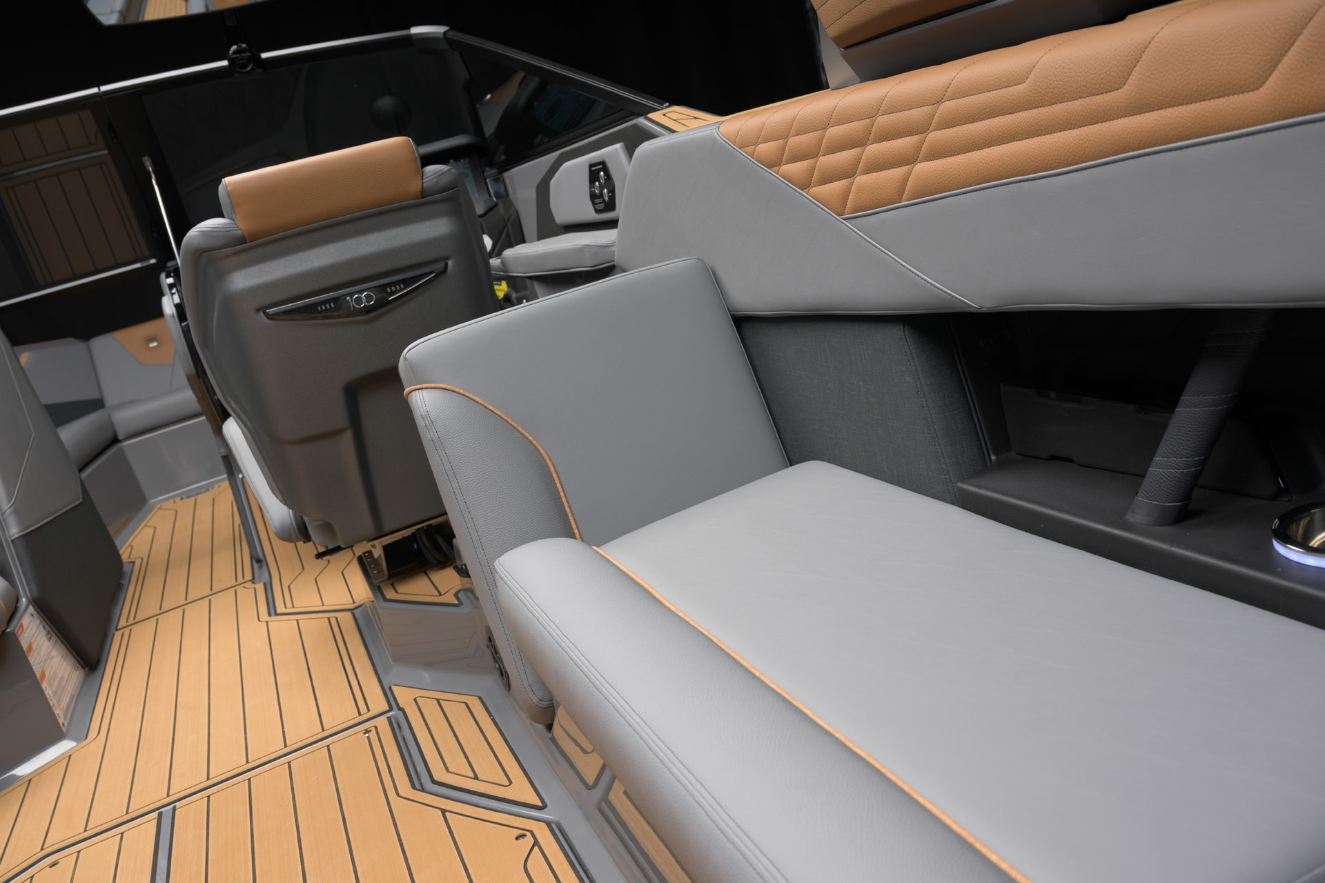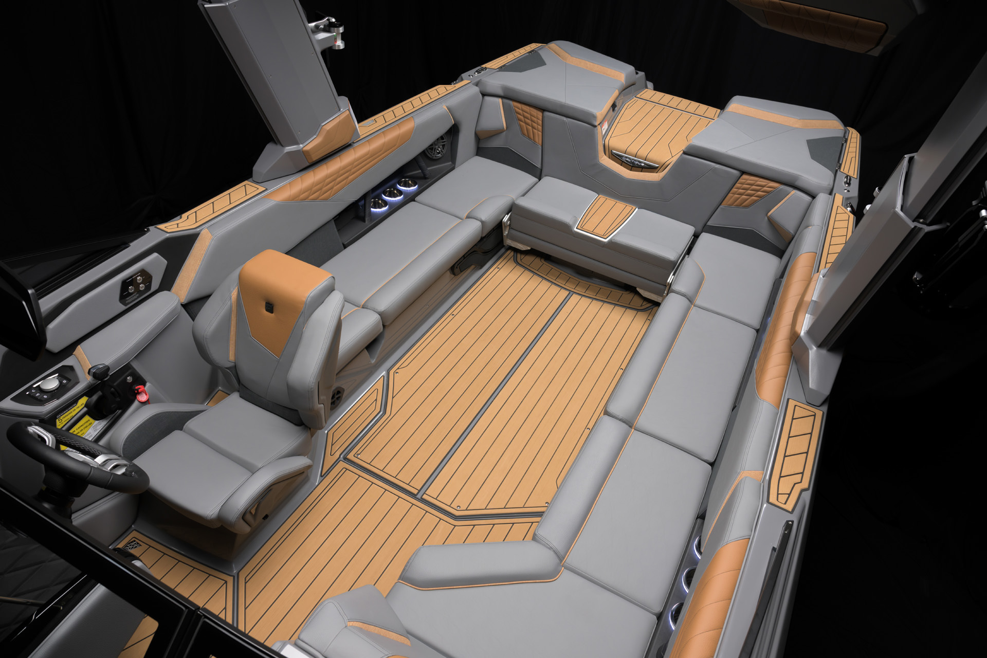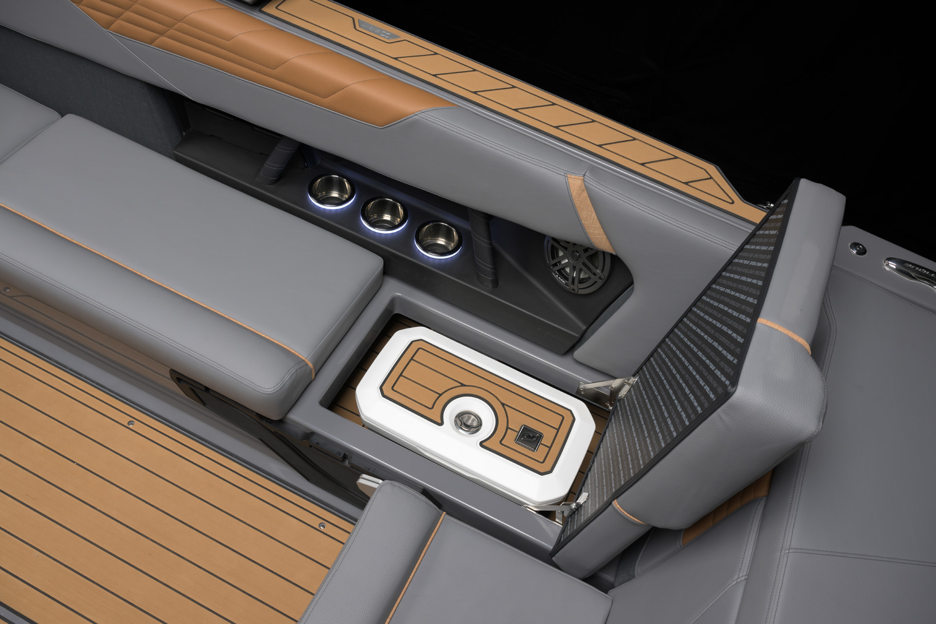 SUPER AIR NAUTIQUE S25は、水上で印象的な外観を纏っています。Sシリーズの全体的なデザイン美学には、シャープなラインと現代的なデザインが組み込まれており、これらが完璧に融合してS25に息を呑むような外観を与えています。従来のピンノーズと組み合わせた流線型の形状により、2025 SUPER AIR NAUTIQUE S25は、大規模なモダンクラシックとなっています。