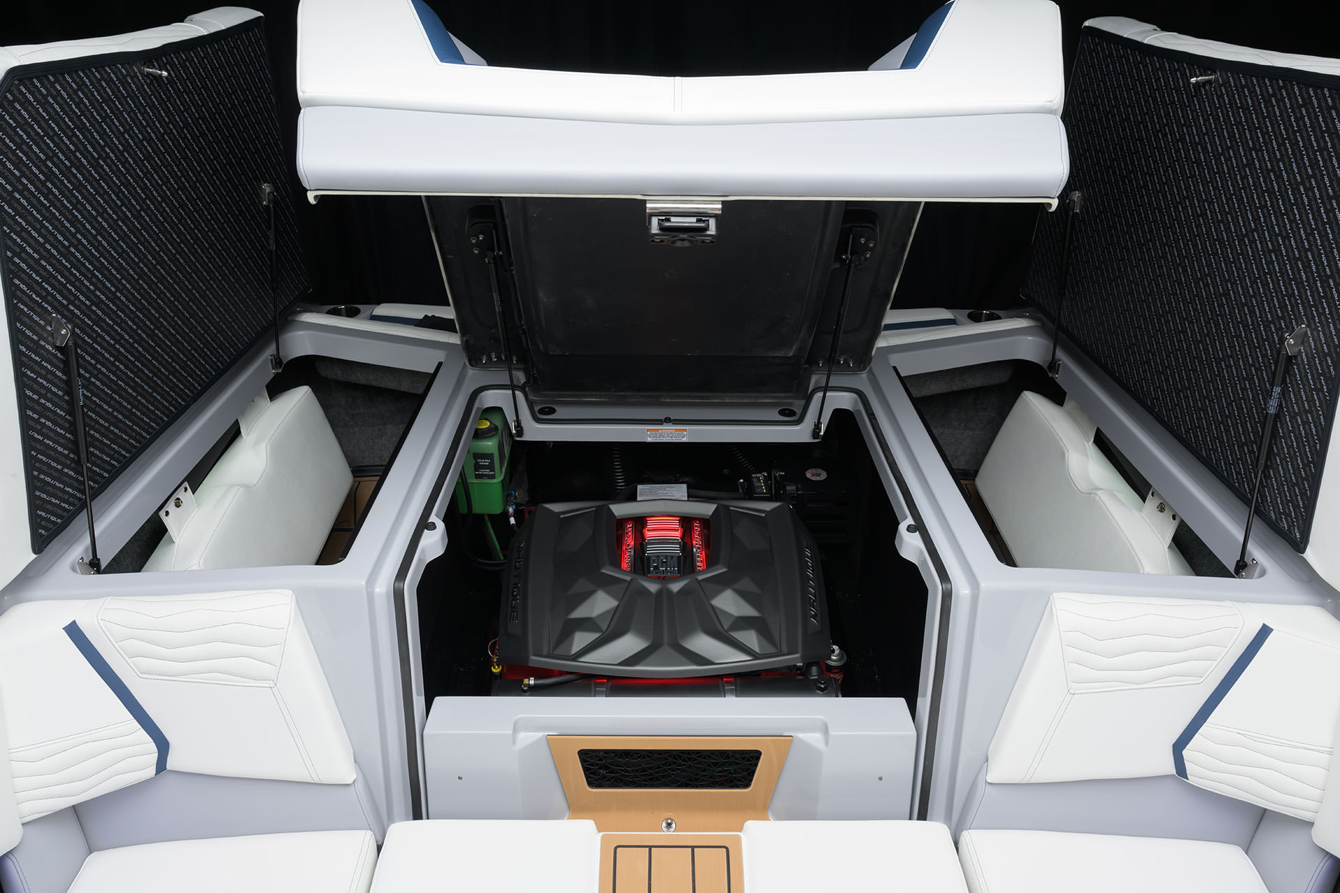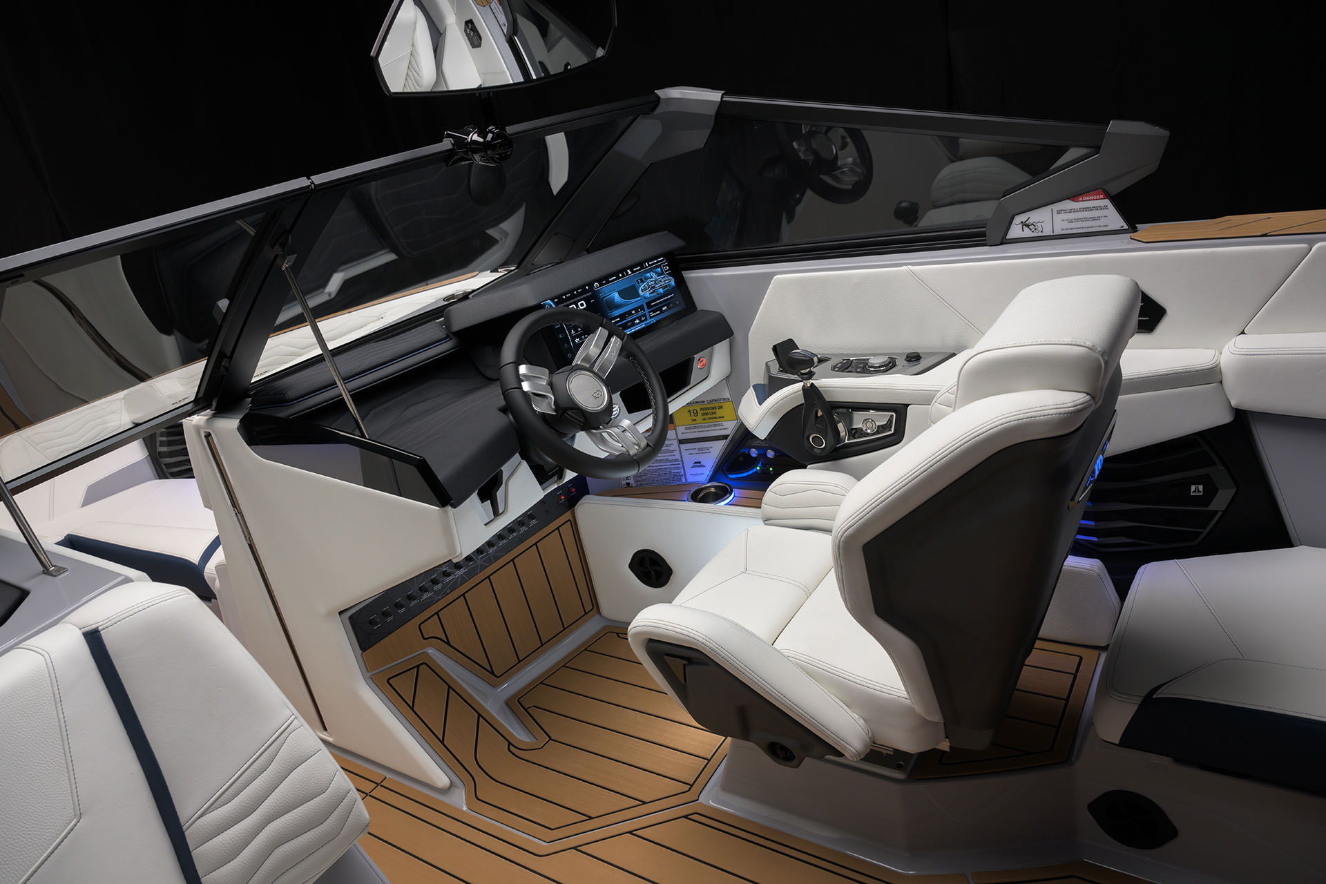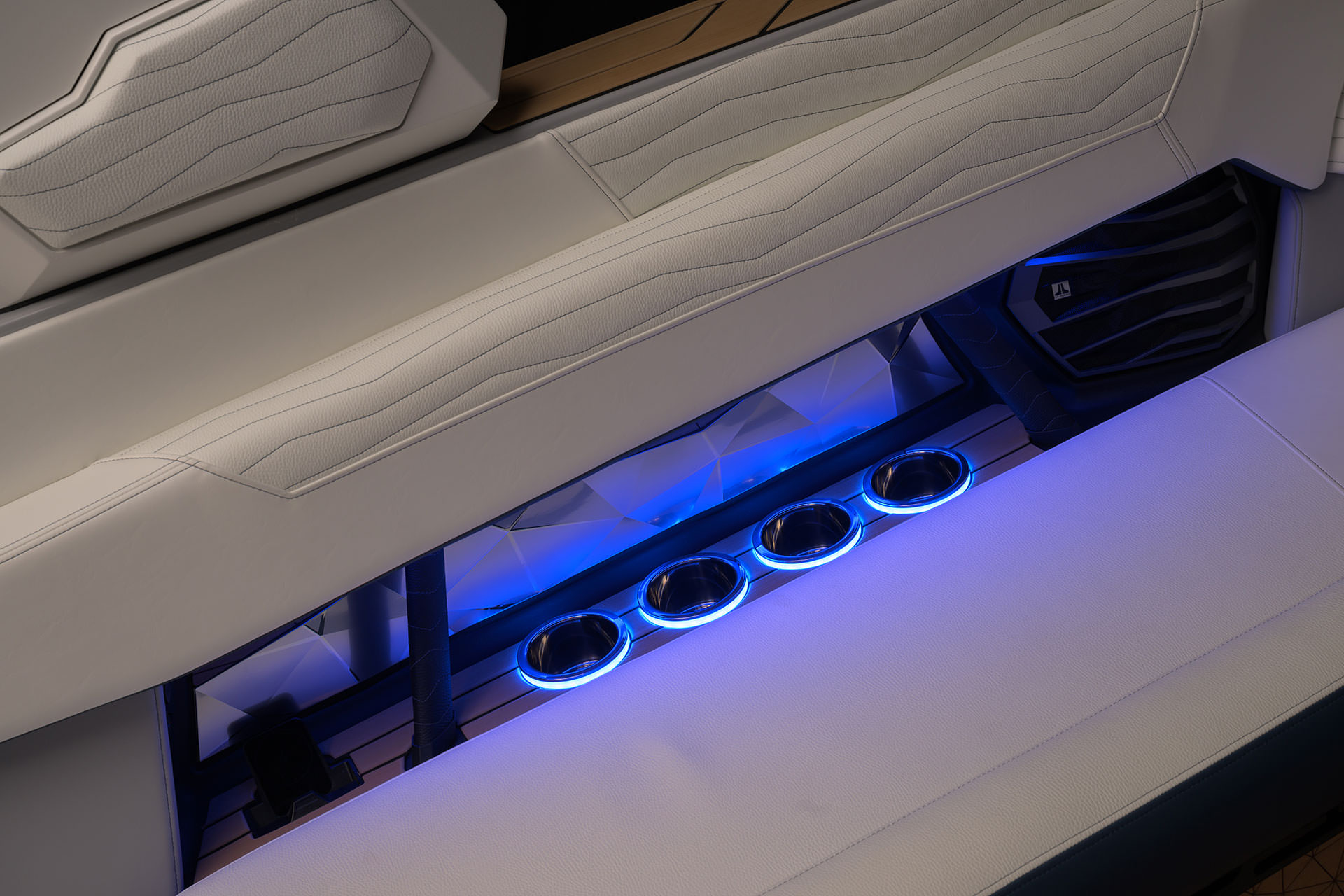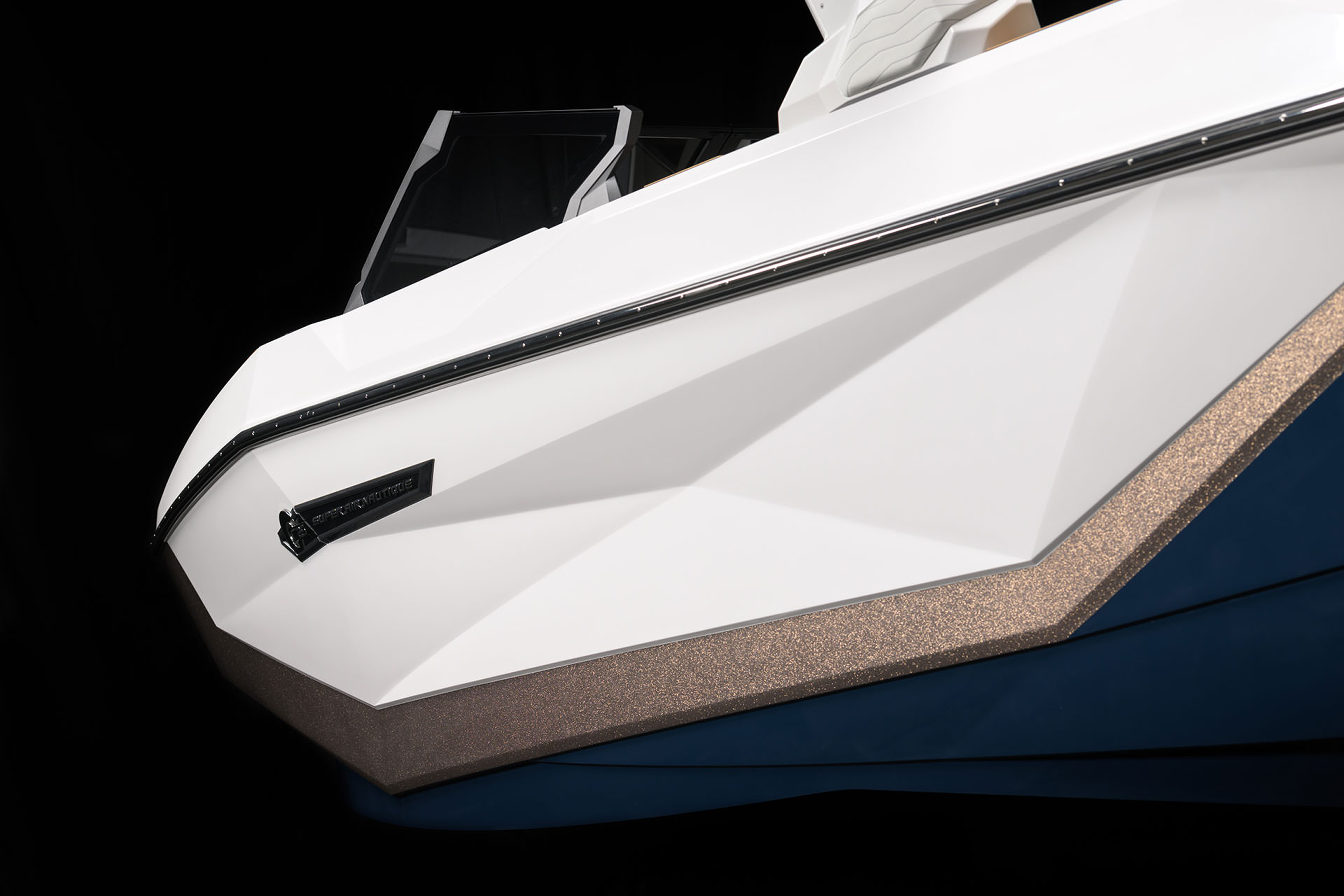 新型 G25 は、シャープでアグレッシブなラインと現代的な美学を特徴とする外観デザインを全面的に刷新しました。当社のPARAGONモデルからヒントを得た新型G25は、水上での忘れられない力強さを体現するため、攻撃的な船首デザインを採用しています。湖を走るG25を一目見れば、忘れられない印象を残すことは間違いありません。