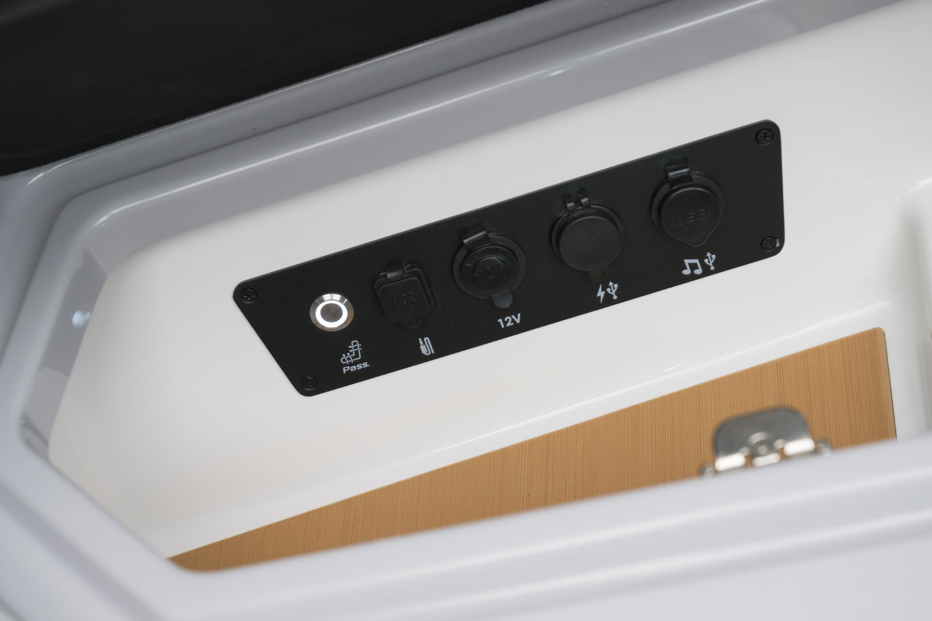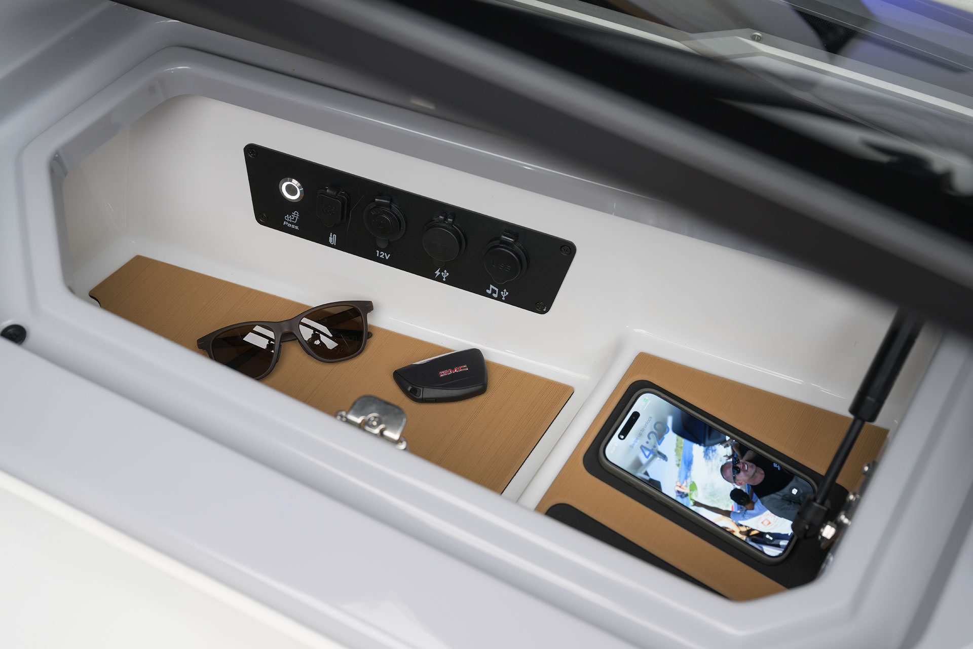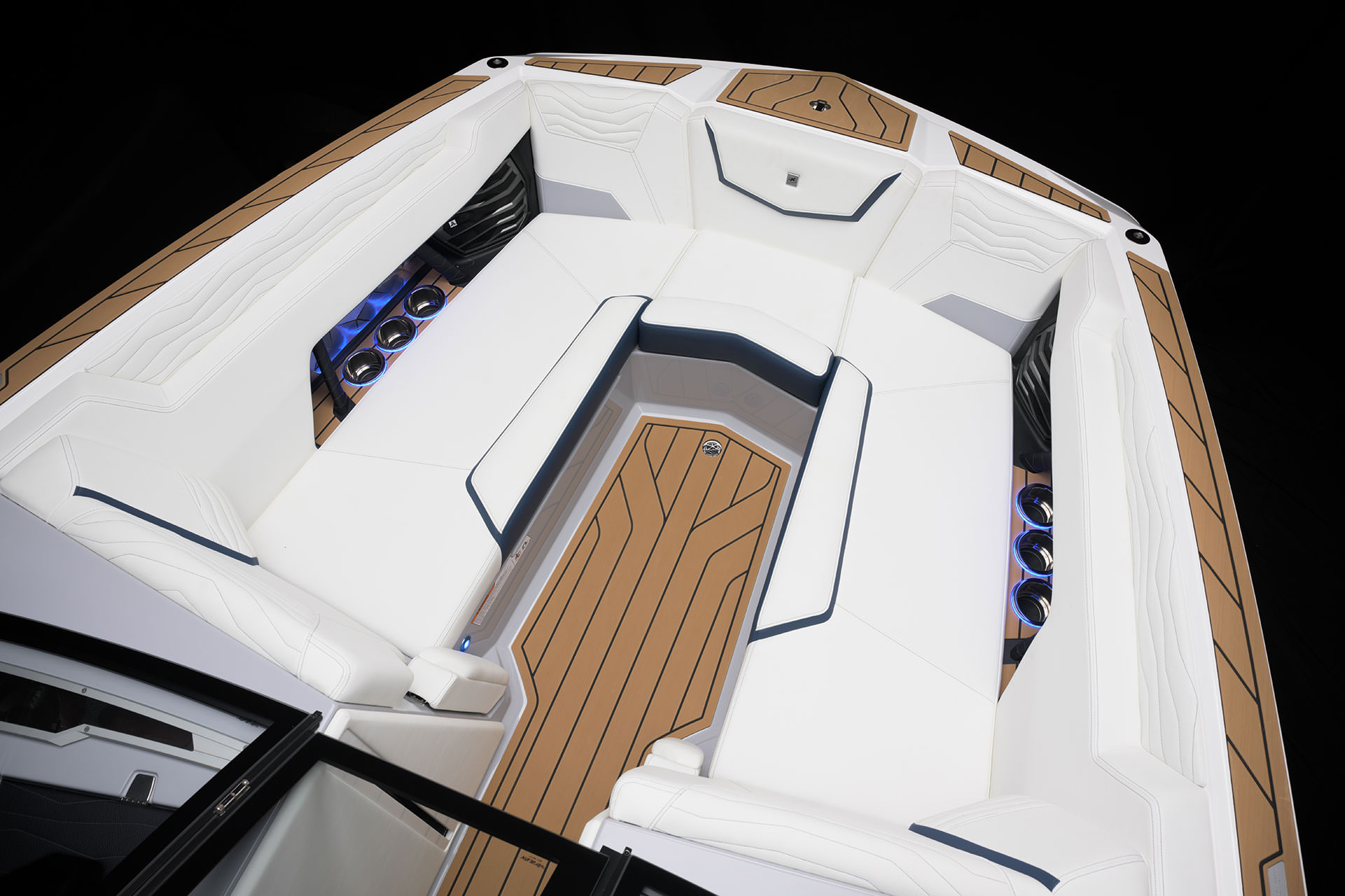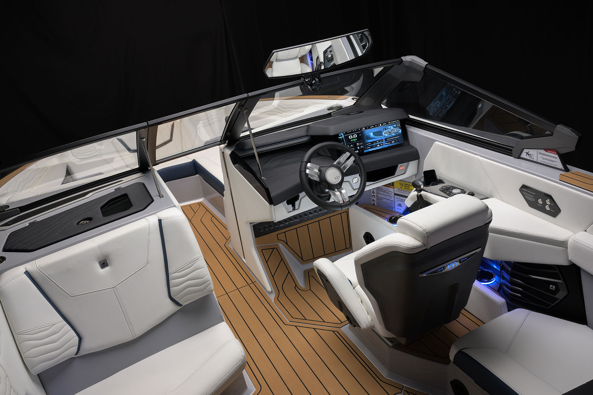 新型 G25 は、シャープでアグレッシブなラインと現代的な美学を特徴とする外観デザインを全面的に刷新しました。当社のPARAGONモデルからヒントを得た新型G25は、水上での忘れられない力強さを体現するため、攻撃的な船首デザインを採用しています。湖を走るG25を一目見れば、忘れられない印象を残すことは間違いありません。