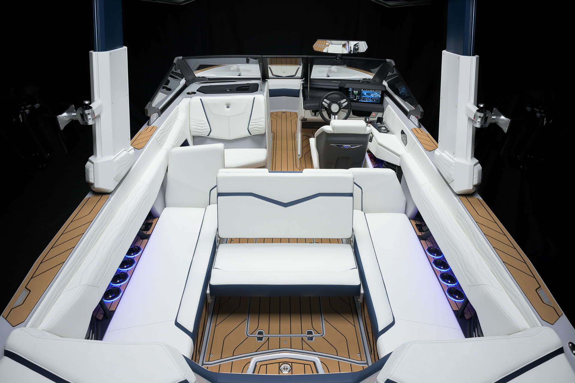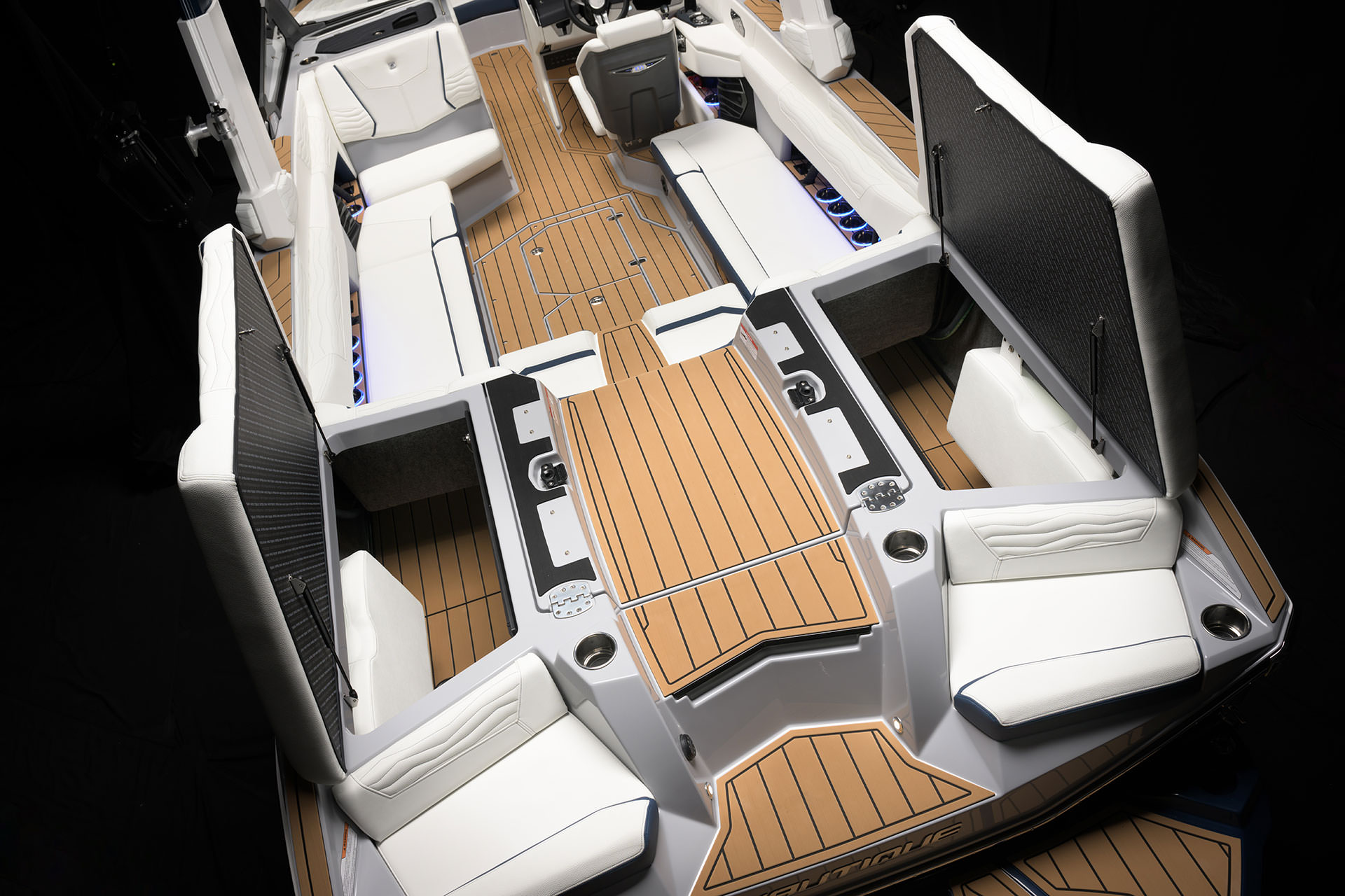 品質と卓越性へのこだわりを貫く新型 G25 は、あらゆるところに職人技と細部への配慮が行き届いています。大人数でもゆったり過ごせるスペースを備えた G25 のラウンジは、複数の跳ね上げ式シートとリバーシブルの船尾シートを備え、ライディングを見学しやすくするためにレイアウトを、完全にカスタマイズ可能です。新型G25に乗って、家族や友人の大勢で過ごす最高の夏の日々を準備しましょう。