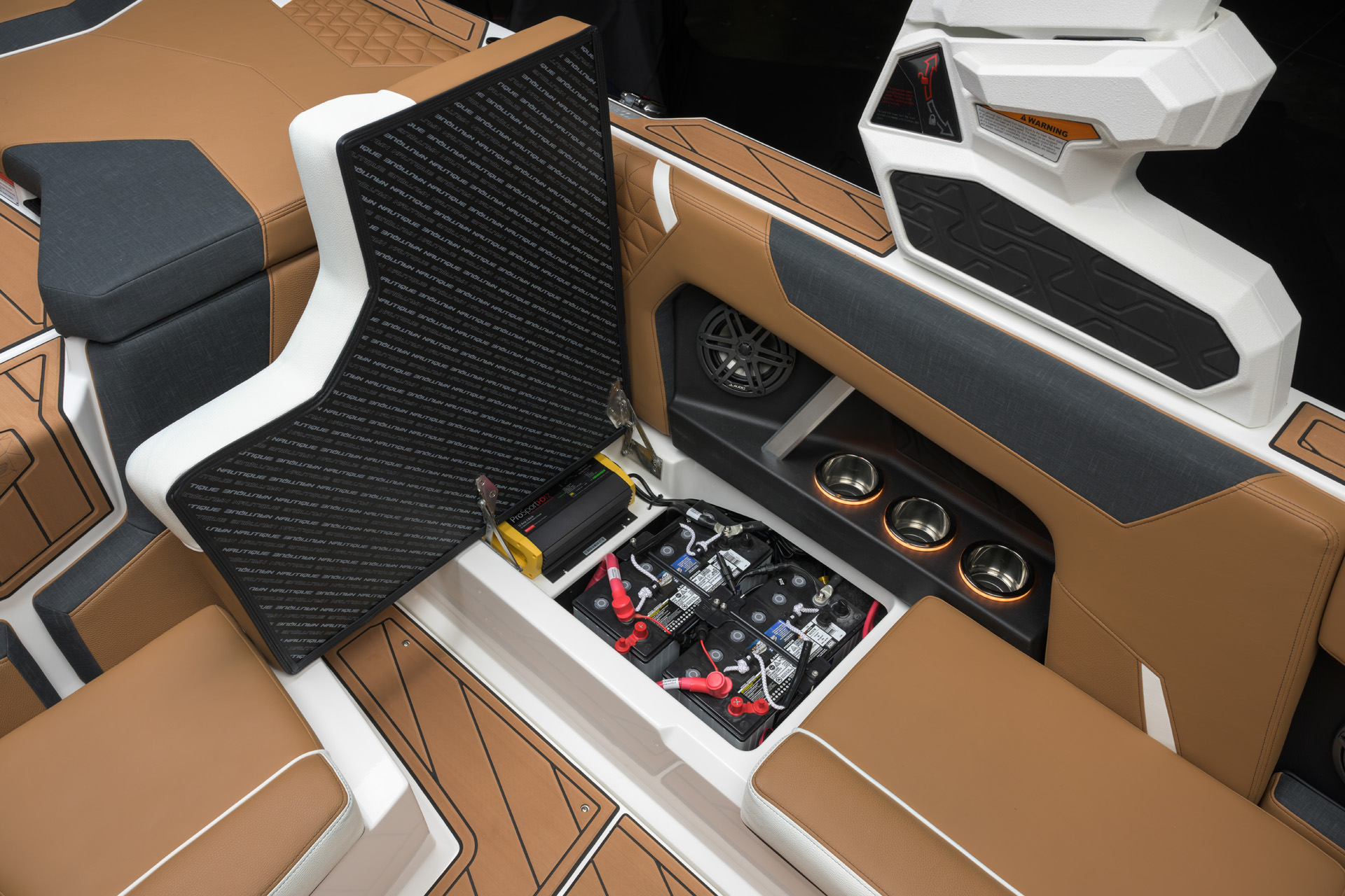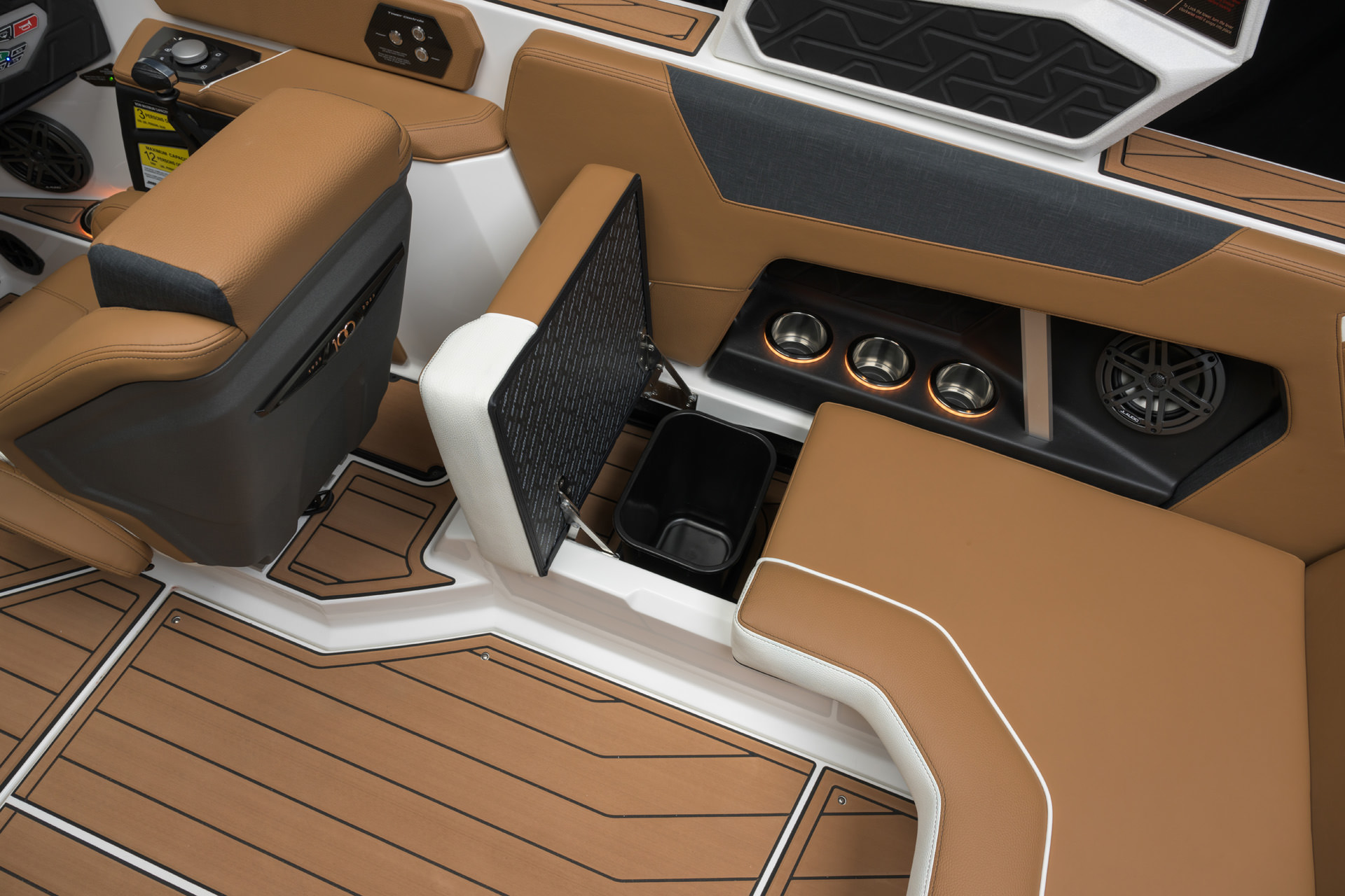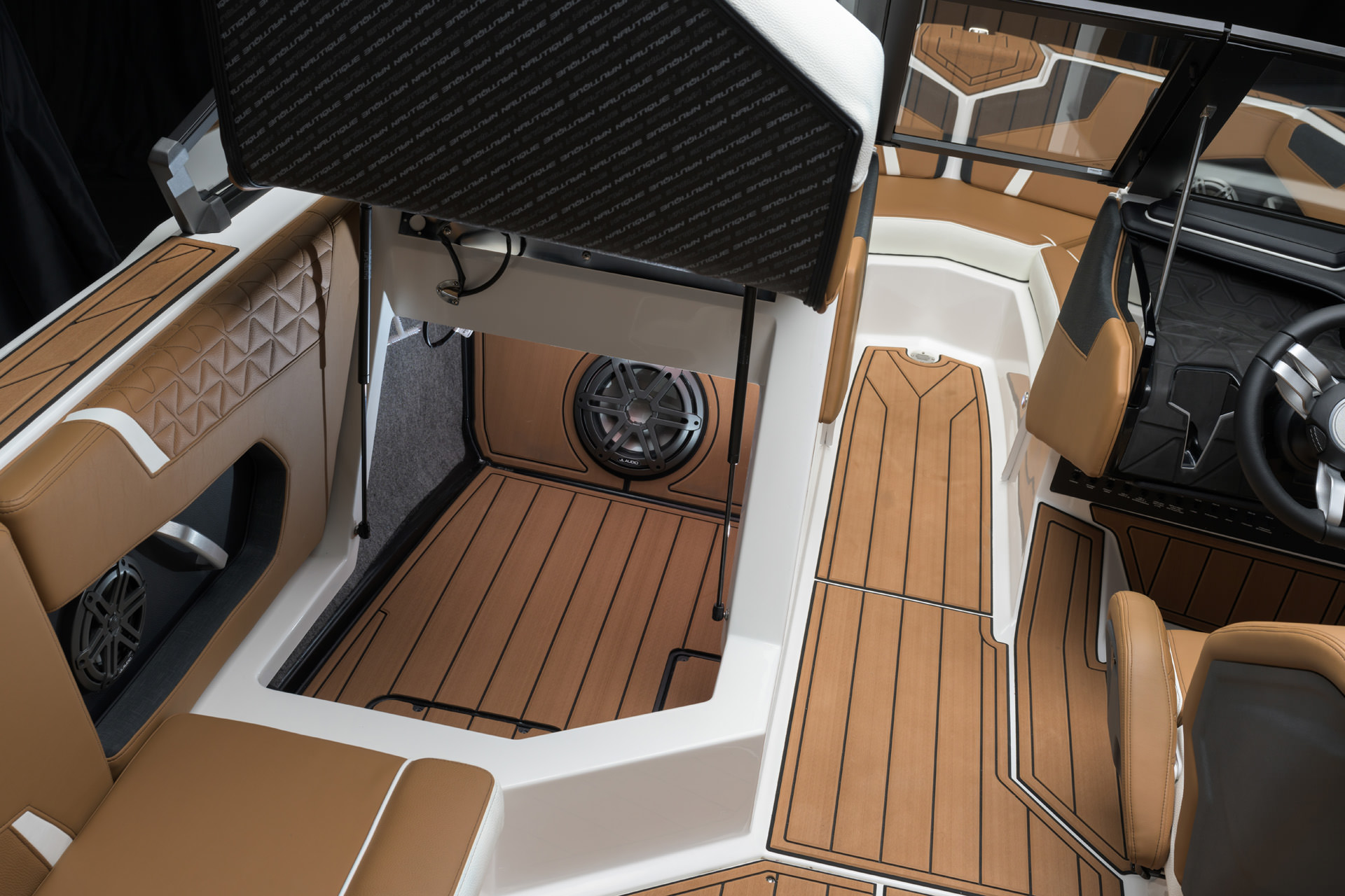 2025 GS20の船体デザインには、水上での優れた外観を引き立てるアクセントとジェルラインが組み込まれています。NAUTIQUEの全ラインナップに見られる外観の特徴に合わせて、GS20は船体側面全体に印象的なボディーラインを誇っています。見る人を魅了する多用途の船体である GS20は、夏を楽しみために必要なキーアイテムです。