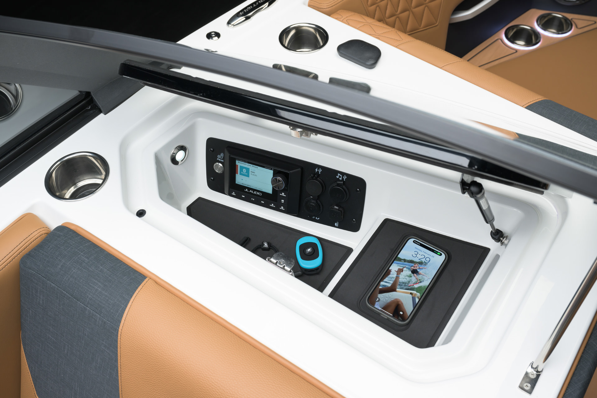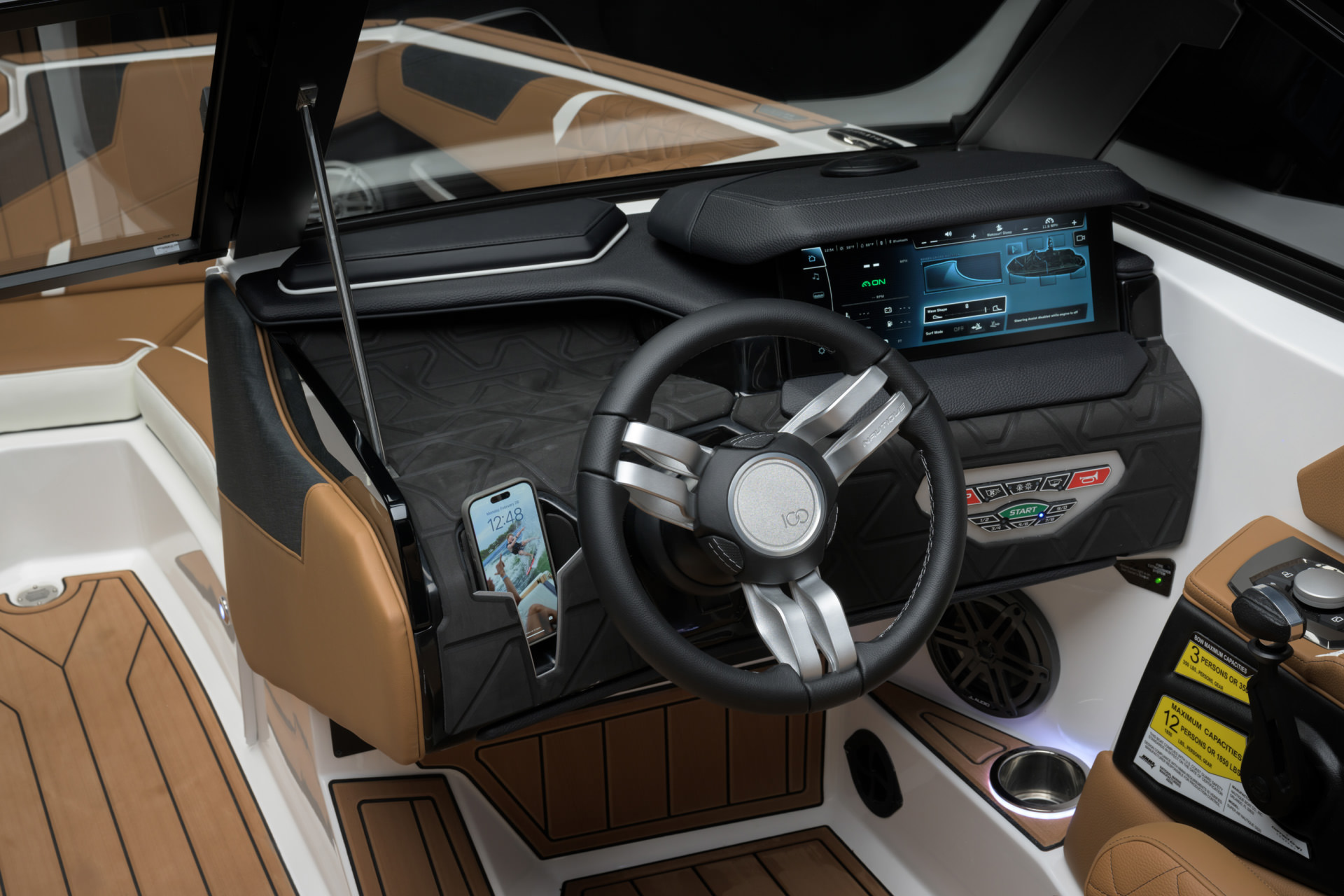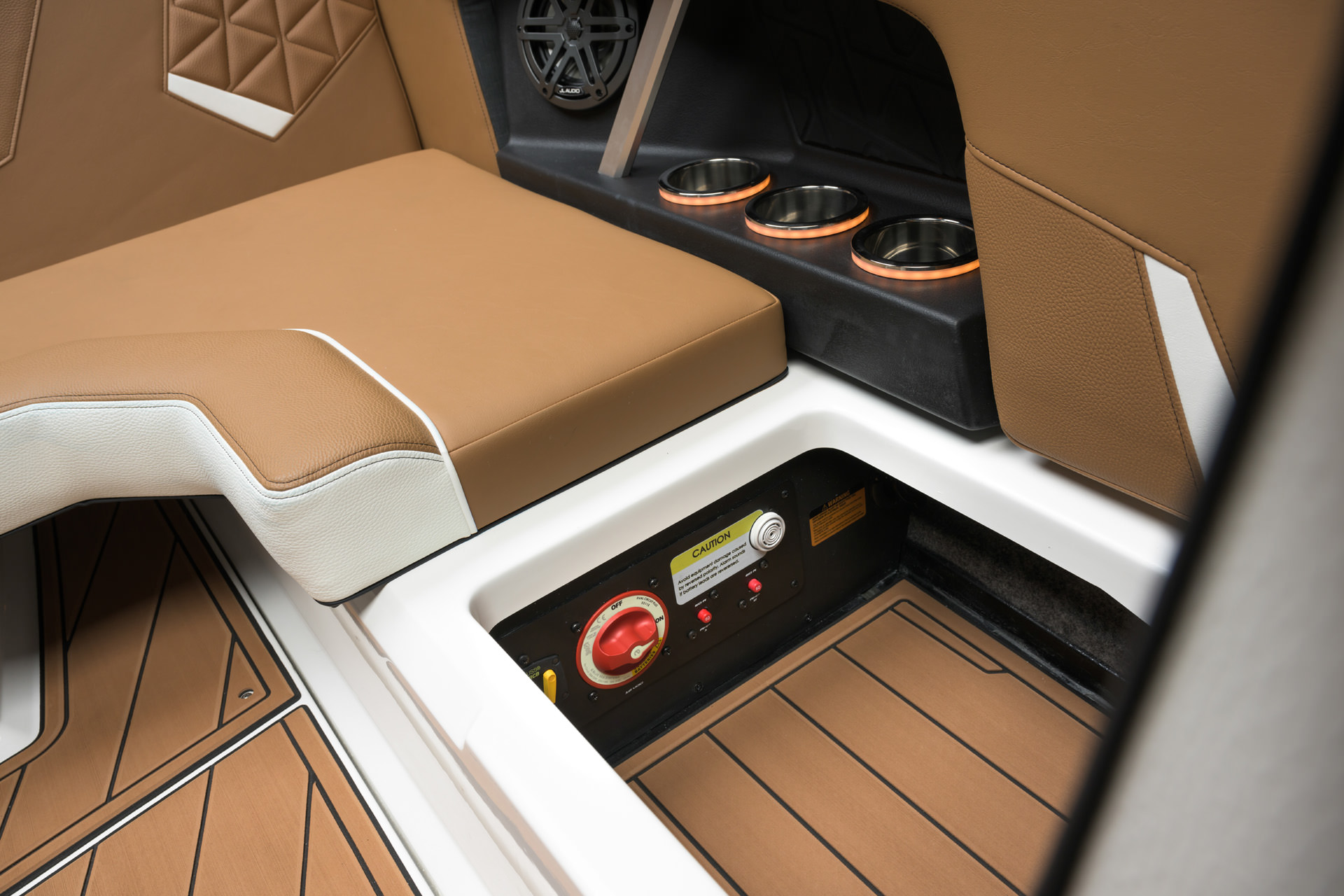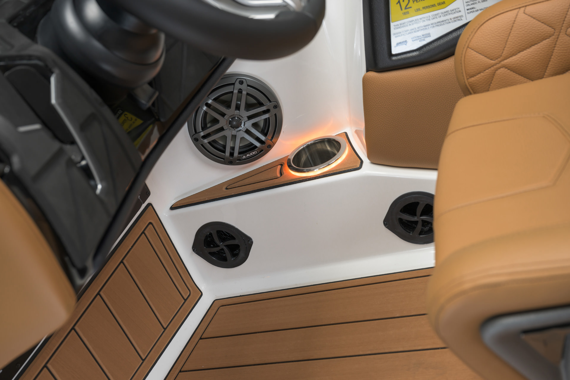 2025 GS20の船体デザインには、水上での優れた外観を引き立てるアクセントとジェルラインが組み込まれています。NAUTIQUEの全ラインナップに見られる外観の特徴に合わせて、GS20は船体側面全体に印象的なボディーラインを誇っています。見る人を魅了する多用途の船体である GS20は、夏を楽しみために必要なキーアイテムです。
